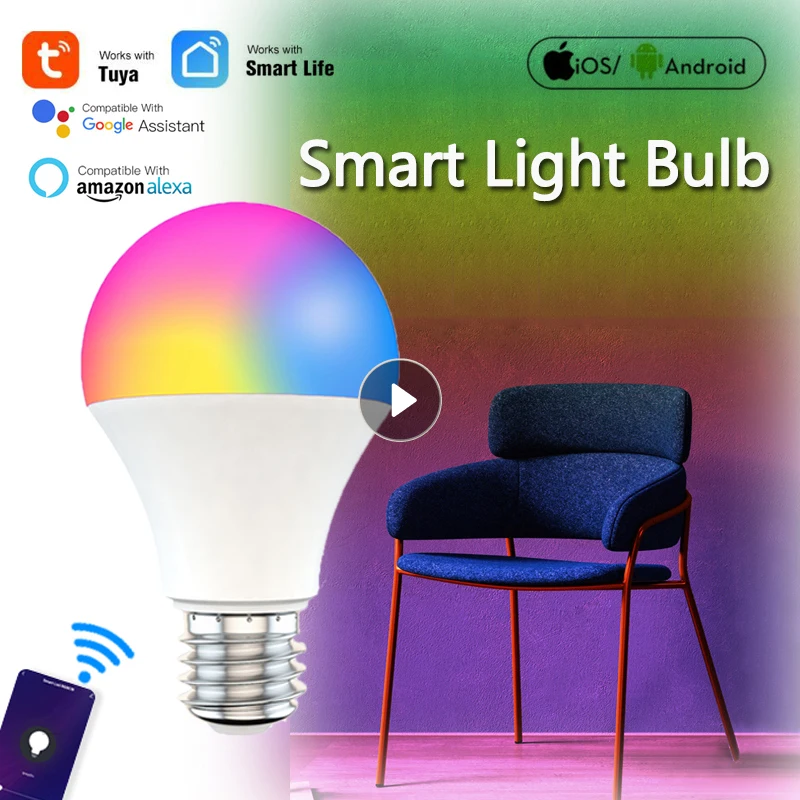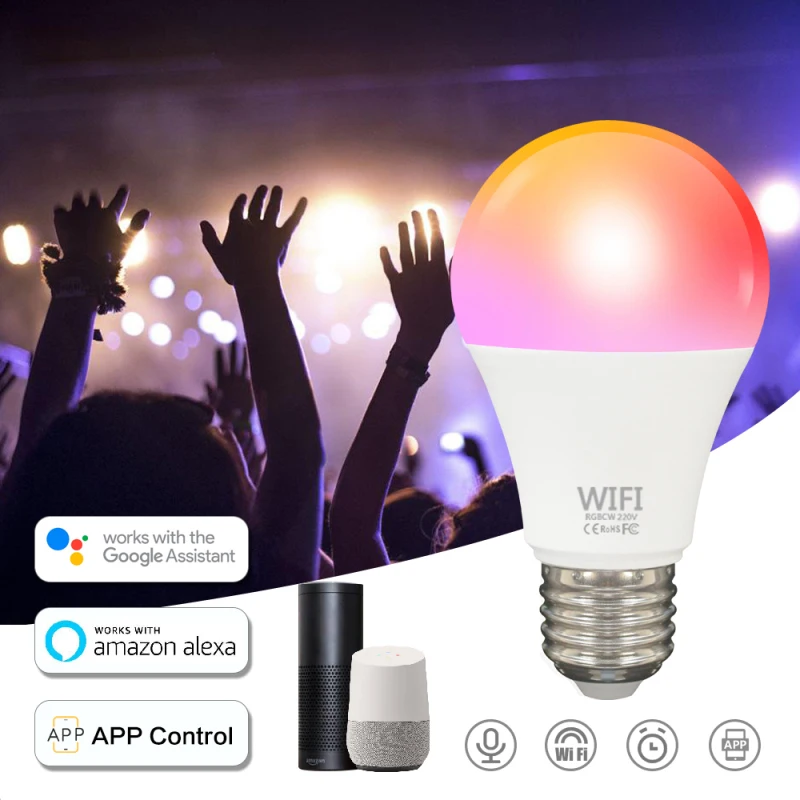 Умная Лампа 15 Вт RGB TUYA с регулируемой яркостью E27, B22, Wi-Fi, светодиодные лампы, 110 В переменного тока, 220 В, работа с Alexa, Google, украшение для дома, дома