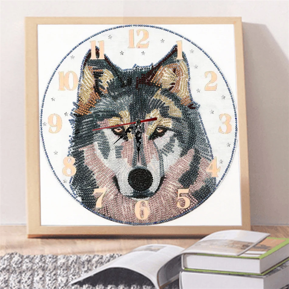 Картина 5D с изображением животных, кота, волка, настоящие часы, алмазная картина для украшения комнаты
