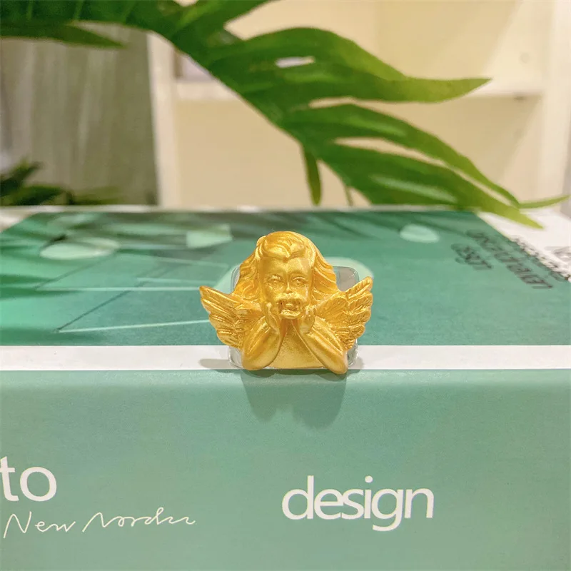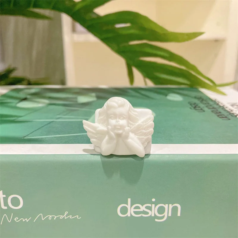Женское кольцо с крыльями ангела, кольцо из смолы в стиле Харадзюку с красивым белым золотом, 2022