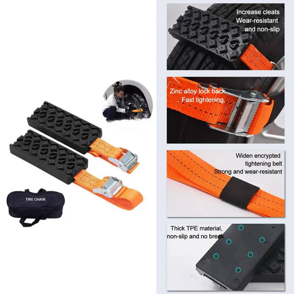 Прочные противоскользящие автомобильные тяговые блоки из ТПЭ с сумкой, аварийные цепные ремни для снега, грязи, песка, цепи для снега, грязи, льда