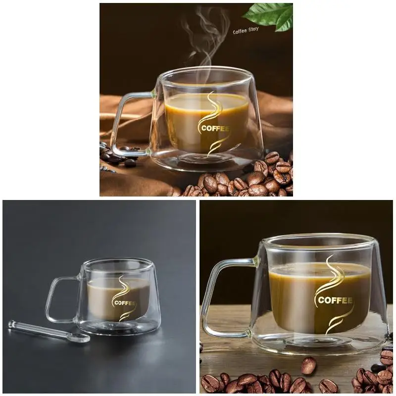 Кофейная кружка, чашка для эспрессо, термостеклянные высококачественные боросиликатные кружки с двойными стенками GQ