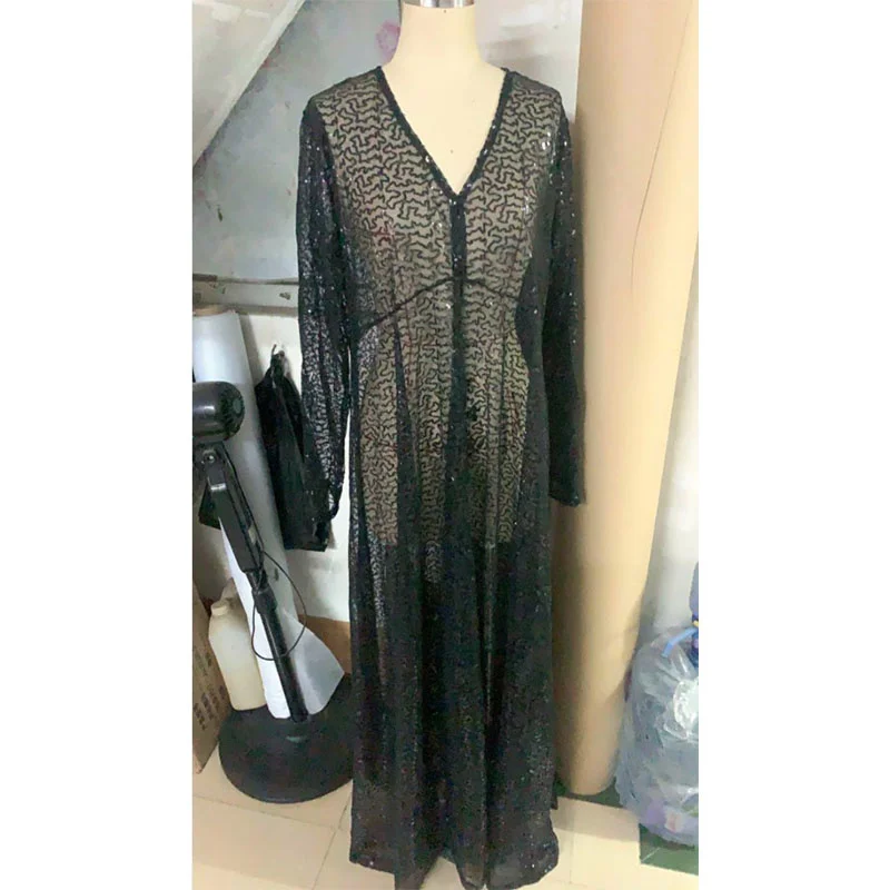 Женское Сетчатое платье макси, Прозрачное платье с длинным рукавом ...