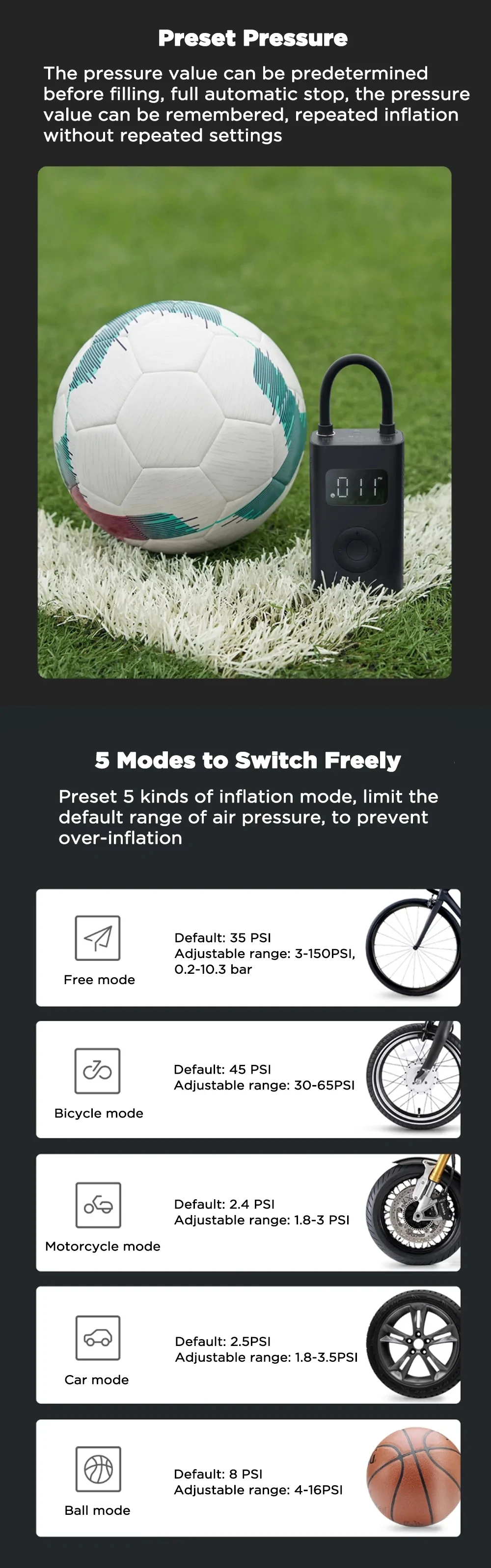Многократное использование предназначено для вашей жизни:-Для автомобилей/SUV/деловых автомобильных шин от относительно низкого давления до заданного давления-Для велосипедных/мотоциклетных шин-Для спортивного оборудования, например, баскетбола.-Для надувных игрушек