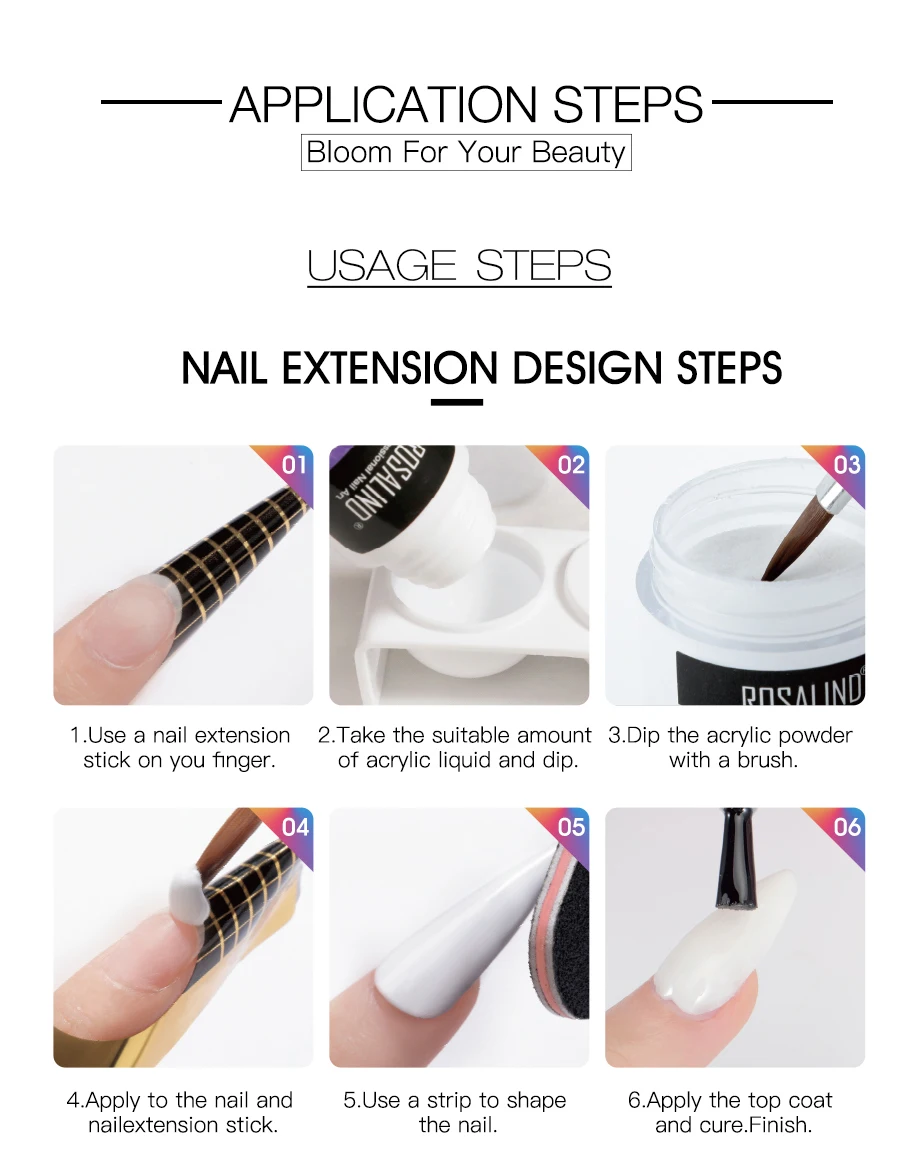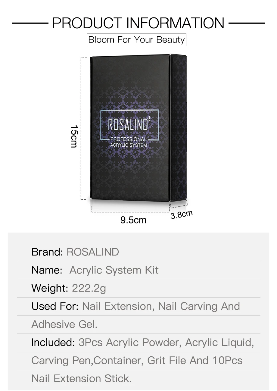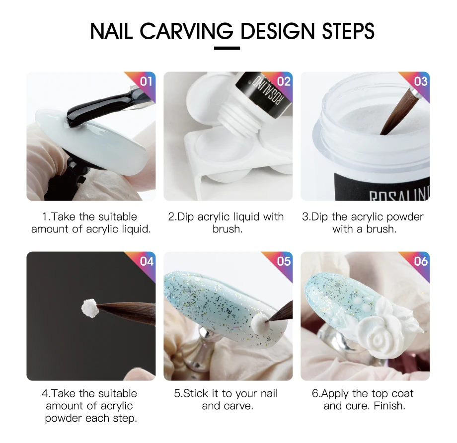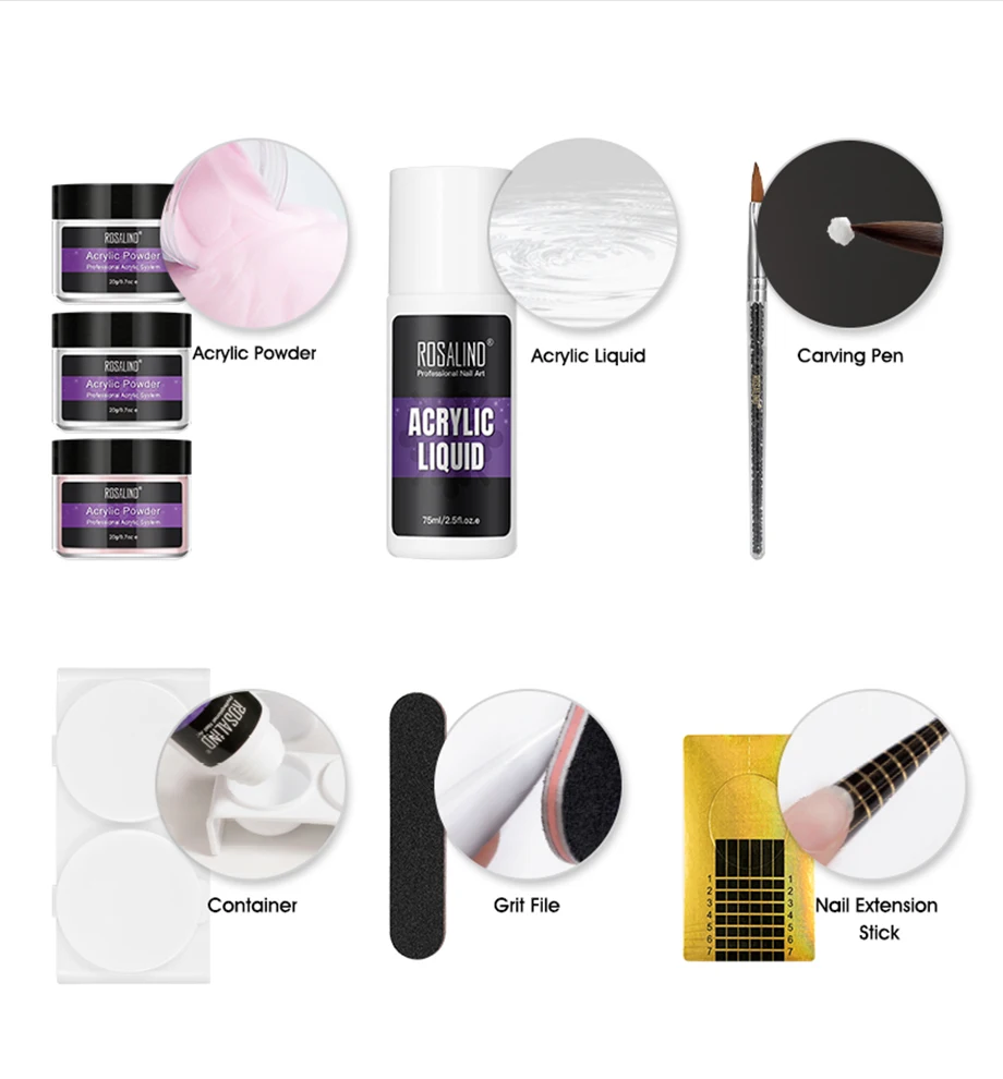 Акриловая пудра ROSALIND, набор для маникюра, акриловые Инструменты для дизайна ногтей, поставщик для наращивания ногтей, профессиональный набор для акриловых ногтей