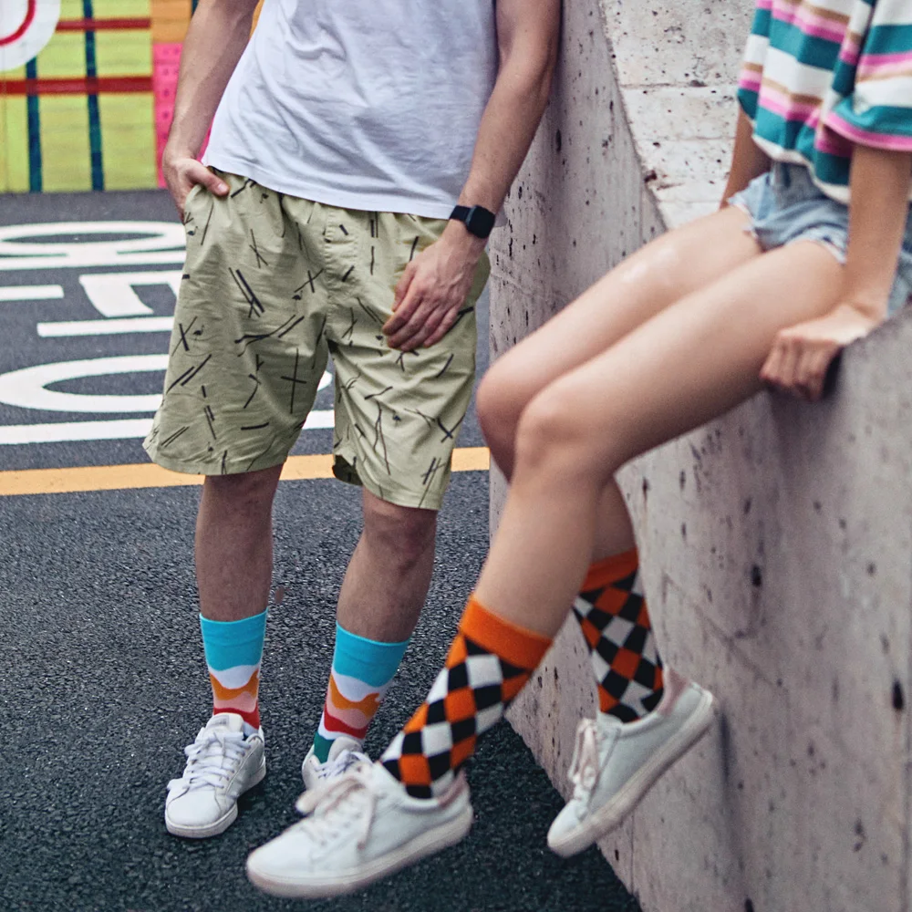 Красочные мужские носки Харадзюку, красочные веселые Смешные символы, международные шахматы, Геометрическая формула, хлопковые носки, рождественский подарок