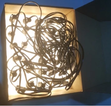 Хорошая гирлянда, светит достаточно ярко, использую для освещения шатра размером 6×3м света достаточно. Единственный недостаток - жесткий шнур ровными арками провисать не хочет.