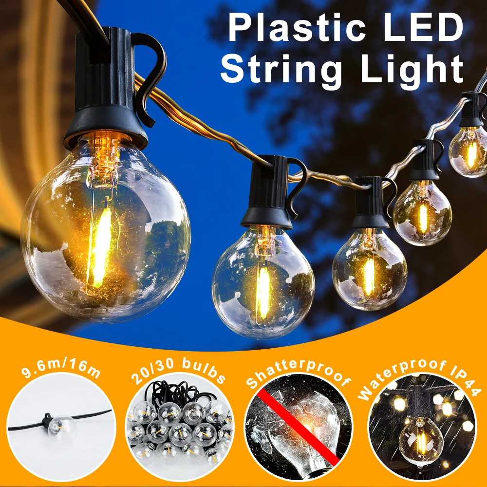 Уличная светодиодная гирлянда G40, водонепроницаемая, ударопрочная, 9,6 м, 16 м