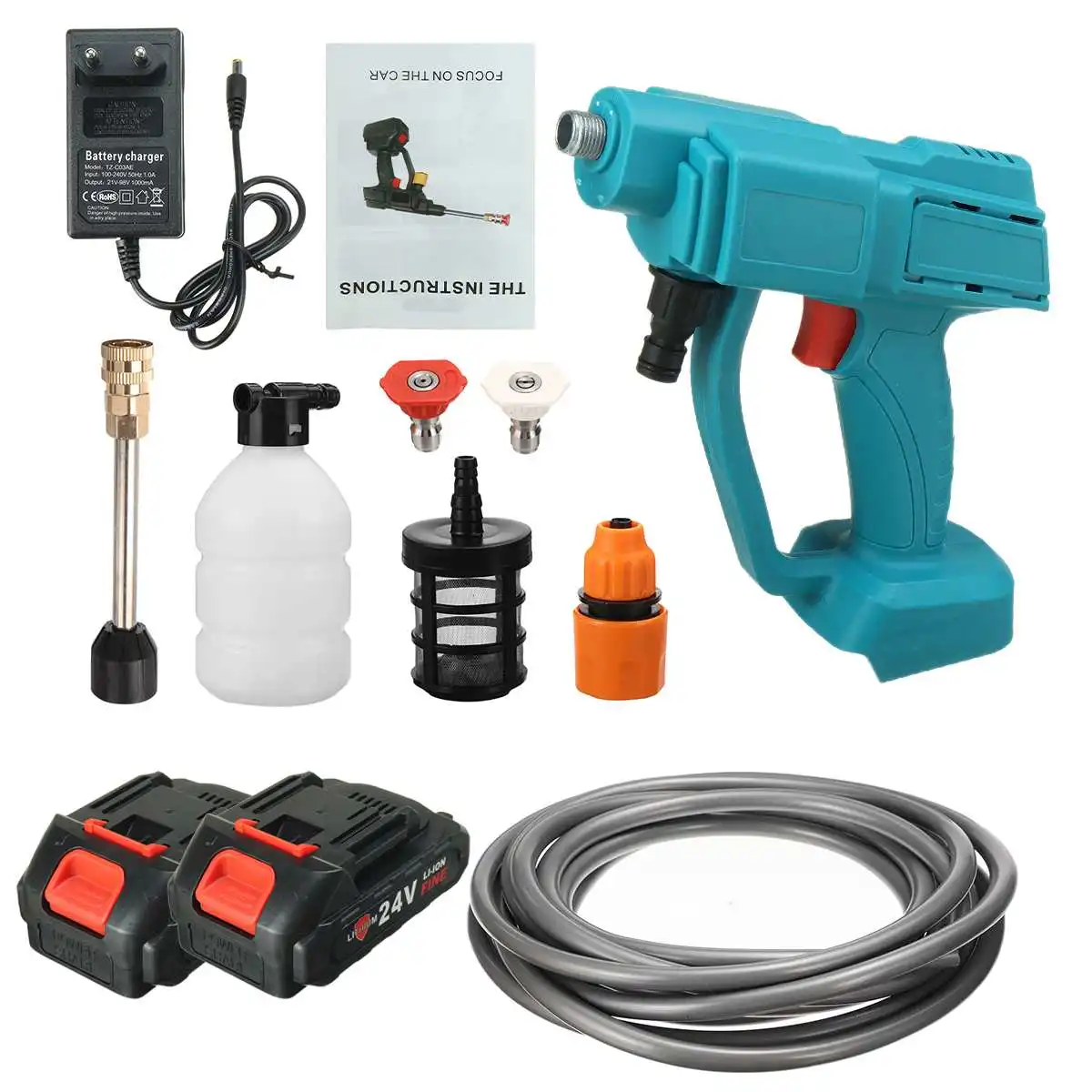 Посылка входит № 1:1 х мойка высокого давления1 Распылительная насадка 0 °1 x Распылительная насадка 40 °1 х 5 м водяной шланг1 х Бутылка из пены1 x быстрый разъем1 х фильтр1 х удлиненный металлический столб1 зарядное устройство1 х батарея1 х Руководство пользователяПосылка входит № 2:1 х мойка высокого давления1 Распылительная насадка 0 °1 x Распылительная насадка 40 °1 х 5 м водяной шланг1 х Бутылка из пены1 x быстрый разъем1 х фильтр1 х удлиненный металлический столб1 зарядное устройство2 х батареи1 х Руководство пользователяСпецификация:Цвет: синийМатериал: АБС-пластик + медьРазмер: 37x23x11,6 смДополнительное напряжение: 24 В, 48 ВБатарея опционально: 1, 2Мощность: 550 ВтДлина водопроводной трубы: 5 метровСкорость: 20000 ОБ/минЕмкость аккумулятора: 10000 мАчОсобенности:【Портативный мойщик высокого давления батареи 】 новый обновленный портативный очиститель питания, по сравнению с традиционной мойкой высокого давления, светильник вес, без ограничений проводов, легко носить с собой, устанавливать и использовать.【Гуманный дизайн NOZZLE】 наша мойка высокого давления оснащена регулируемым множеством распылителей, позволяет переключаться между различной степенью интенсивности потока воды этот моечный пистолет позволяет вам эффективно и быстро очистить все ваши открытые пространства и устройства.[Очиститель фильтра] автомобильная мойка высокого давления может эффективно фильтровать примеси и предотвращать загрязнение примесей, которые вы хотите очистить, как и ваша дорогая автомобильная краска. Это также может защитить насос и продлить его срок службы【 Мощный мотор из чистой меди 】 мини-мойка оснащена чистой меди, которая имеет более стабильную производительность и более сильную мощность. Интеллектуальный индукционный двигатель с переменной частотой, длительное время ожидания, энергосбережение и энергосбережение. Срок службы в 3-5 раз выше, чем у обычного медного двигателя.【Многофункциональность и применение 】-Чистка и обслуживание различных автотранспортных средств, инженерных транспортных средств, инженерной техники и сельскохозяйственной техники, поддерживающих продукцию. Наш пистолет для мойки высокого давления эффективен, особенно для очистки внешних стен зданий, полов, ванн, бассейнов, дверей и окон, а также углов, которые сложно очистить вручную. Это лучшая машина для мойки высокого давления для кемпинга и длительных поездок.