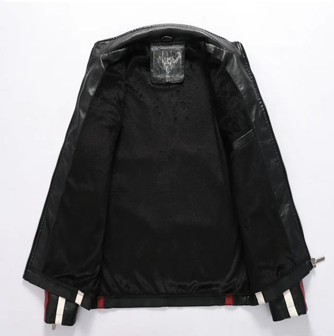 Inverno jaqueta de couro dos homens da motocicleta logotipo bordado bombardeiro jaqueta fino ajuste casaco motociclista moda Ziper casaco masculino