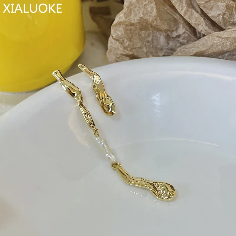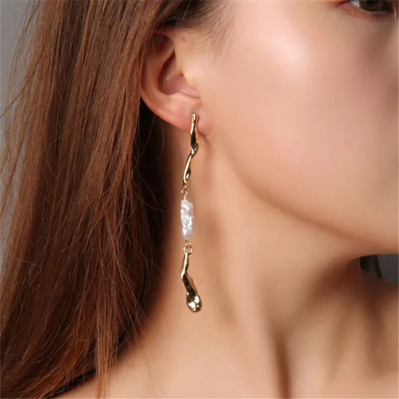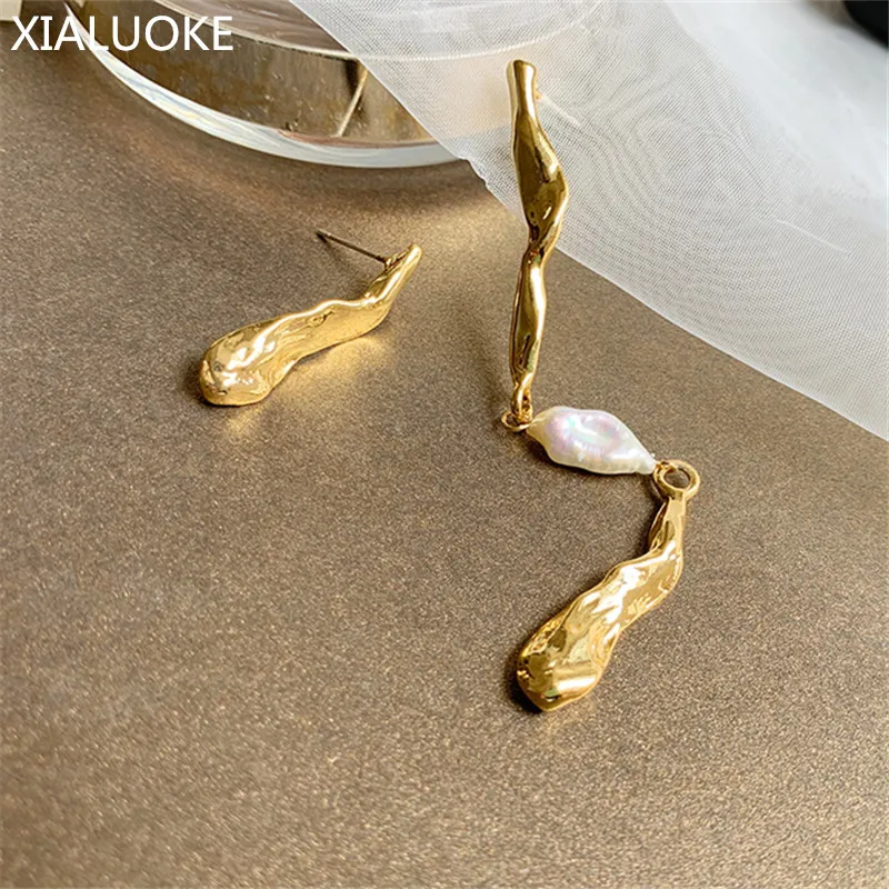 XIALUOKE S925 игла металлическая Геометрия Нерегулярные барокко пресноводный жемчуг длинные серьги Подвески Женские Ретро элегантные ювелирные изделия для ушей 21