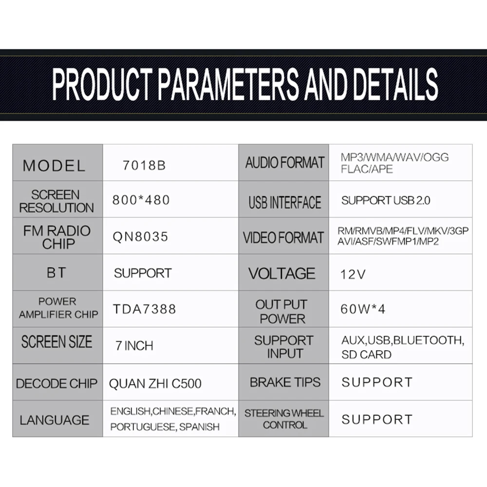 Размер Изделия178 x 100 x 55 mm 7018B MP5 Multimidio Player