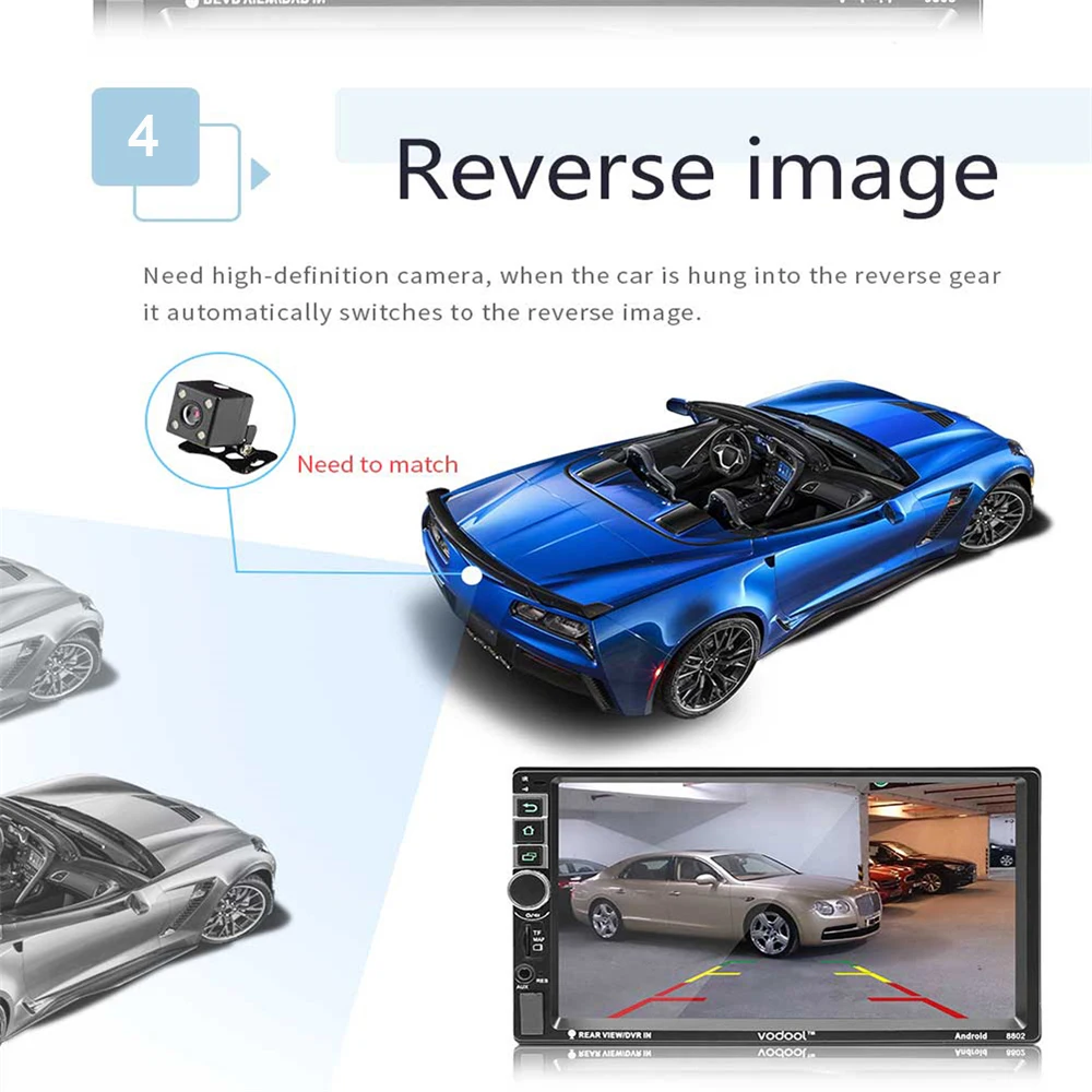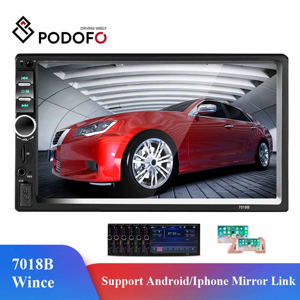 Автомагнитола Podofo 7018B, мультимедийный плеер с 7 "HD дисплеем, с поддержкой камеры заднего вида, USB, FM, AUX, типоразмер 2DIN