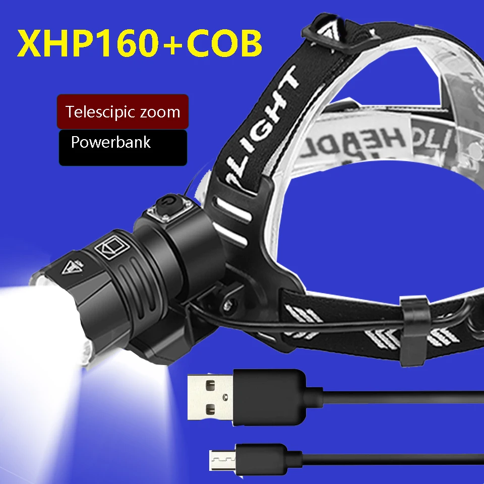 Супер мощный яркий светодиодный налобный фонарь XHP160, яркий светодиодный налобный фонарь 18650, перезаряжаемый налобный фонарь с Usb, налобный фонарь для рыбалки