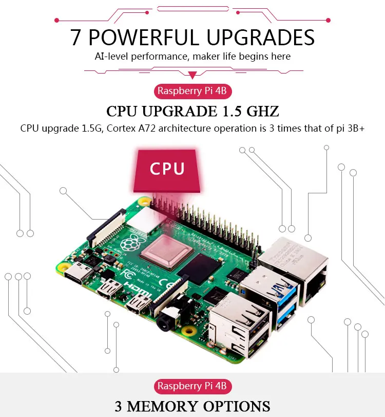 Плата для разработки Raspberry Pi 4 Model B, ОЗУ 2 ГБ4 ГБ8 ГБ, 4-ядерный процессор, 1,5 ГГц, скорость 3 скорости, чем Pi 3B +