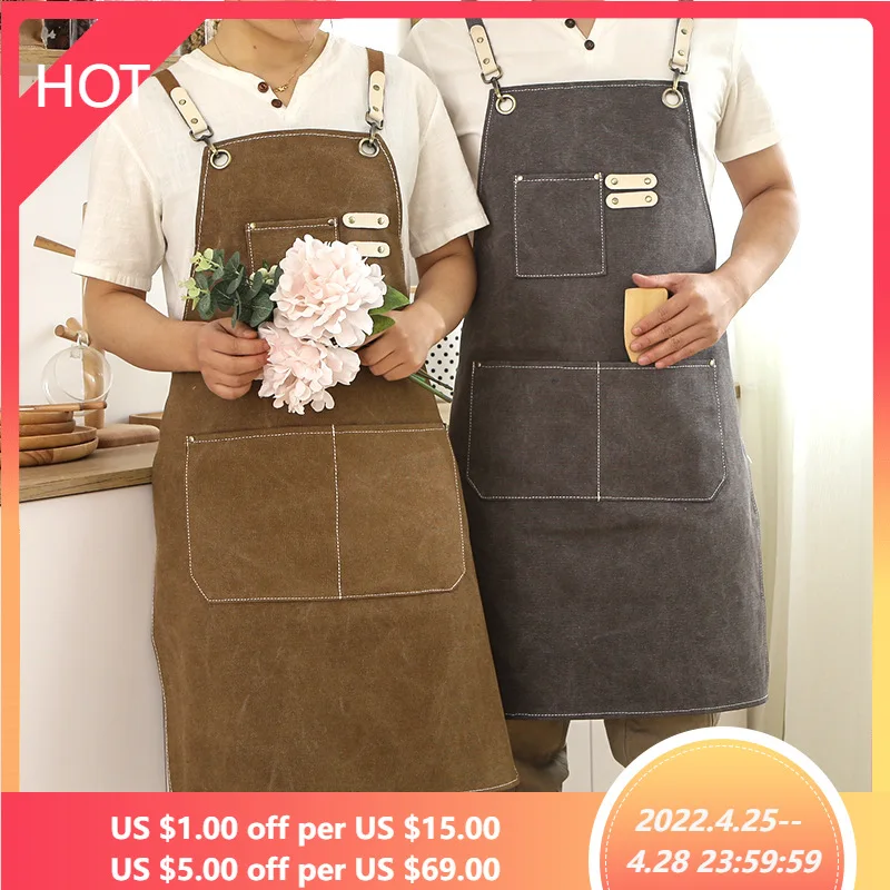 Новинка 2022, модный Рабочий Фартук унисекс для мужчин, брезентовый черный фартук, Регулируемый Кухонный Фартук с карманами для инструментов