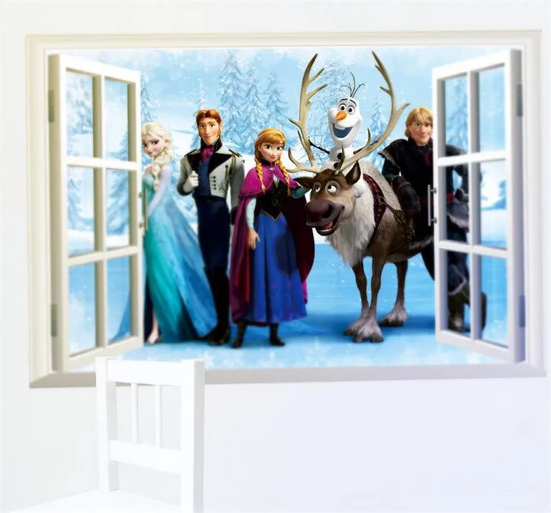 Яркие Мультяшные наклейки на стену Холодное сердце, ложное окно, дл...