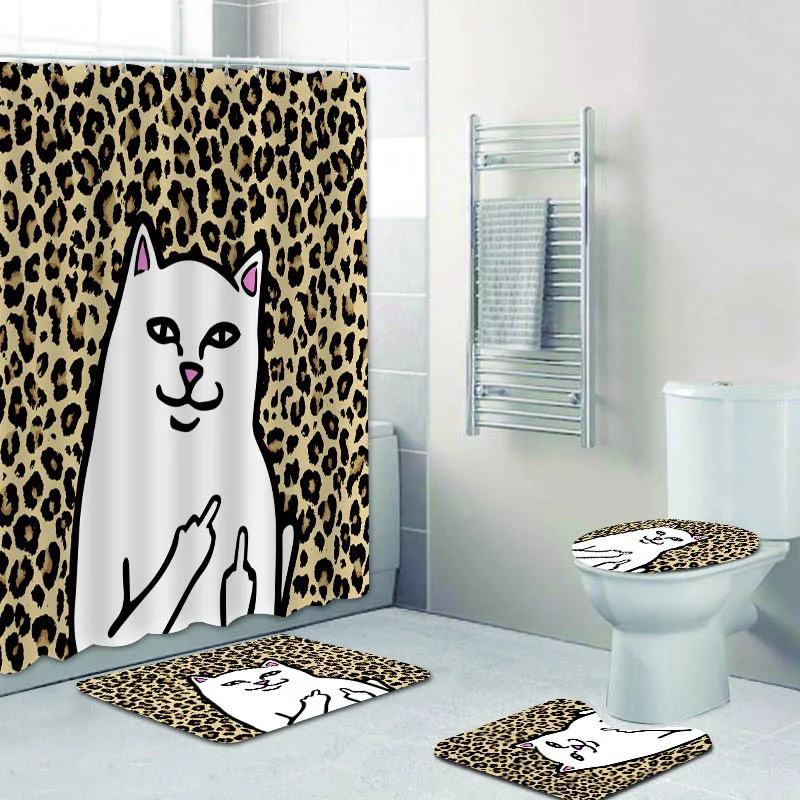 Классная леопардовая занавеска для душа и ковер Rip Dip Lord Nermal, забавная камуфляжная занавеска в виде кошки-гепарда для ванной комнаты, Размеры s Mats
