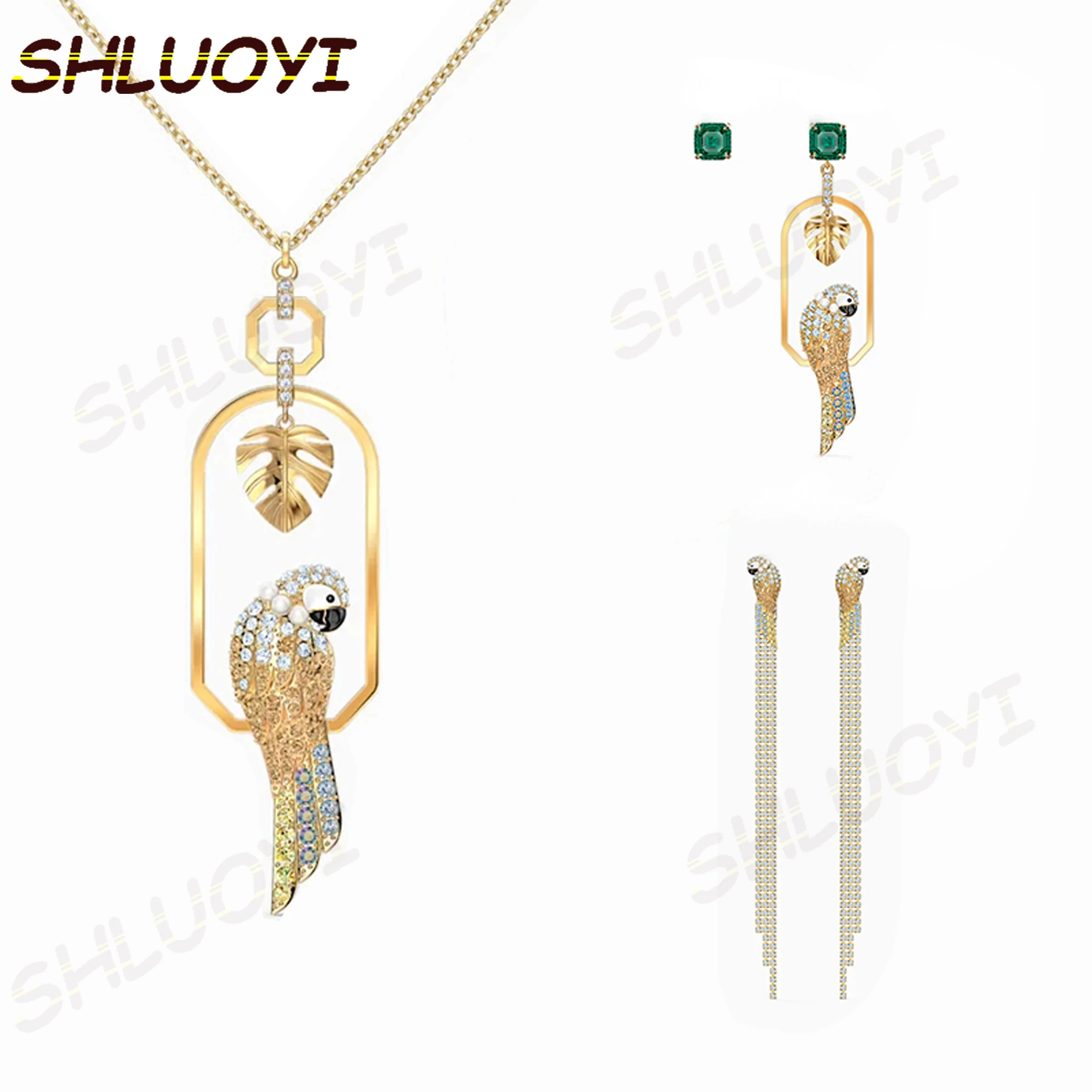 Новинка 2020, SWA, Тропический попугай, украшение, тропический сад, качающийся кристалл, Женское Ожерелье, модное изысканное лучшее ювелирное изделие, подарок