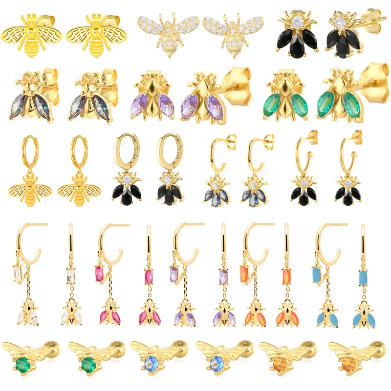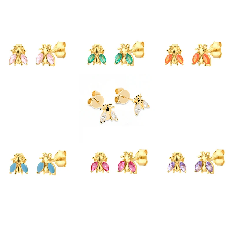 2021 трендовые серьги-гвоздики из стерлингового серебра 925 пробы, корейские милые мини-серьги с разноцветным цирконием и Пчелой для женщин, пирсинг, ювелирные украшения