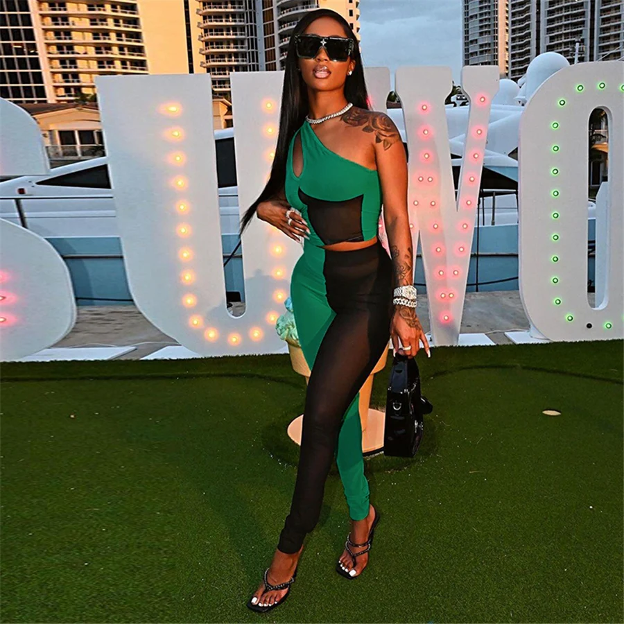 Женский лоскутный спортивный костюм Sisterlinda, комплект из 2 предметов, прозрачный Боди без рукавов и брюки, костюм для фитнеса, уличная одежда
