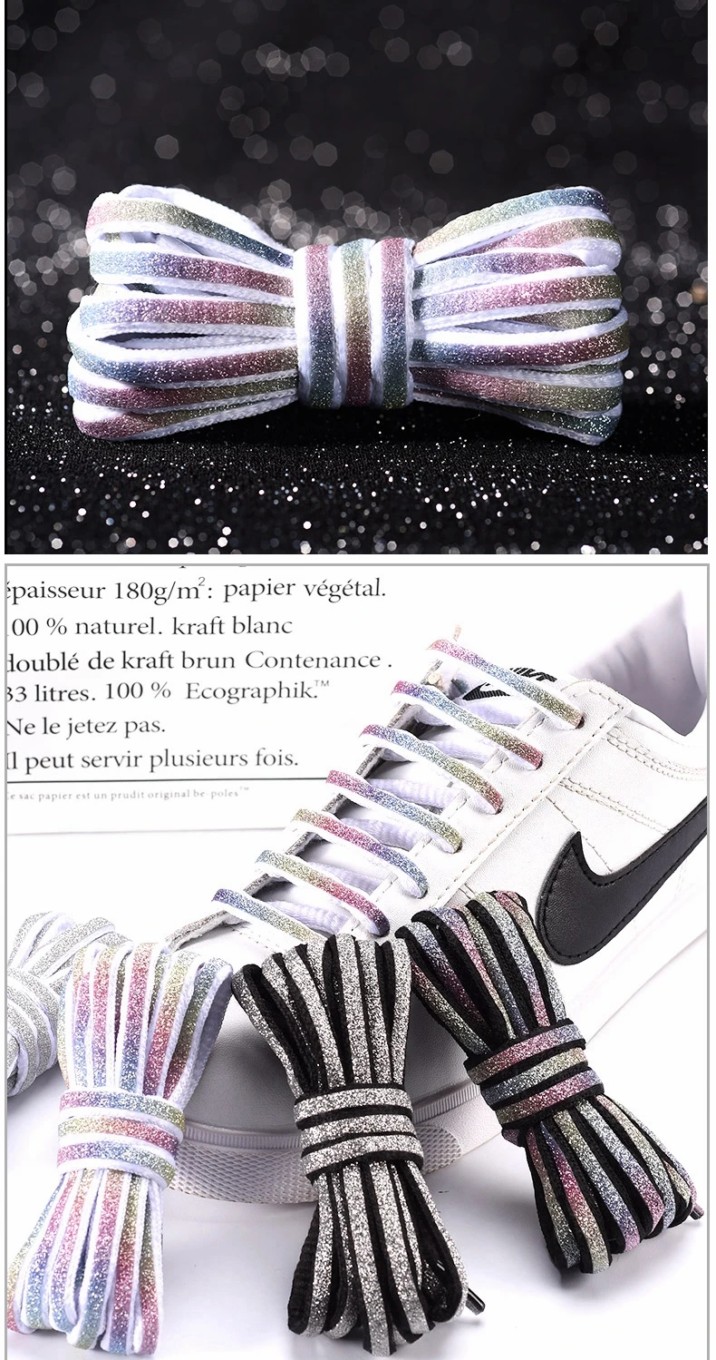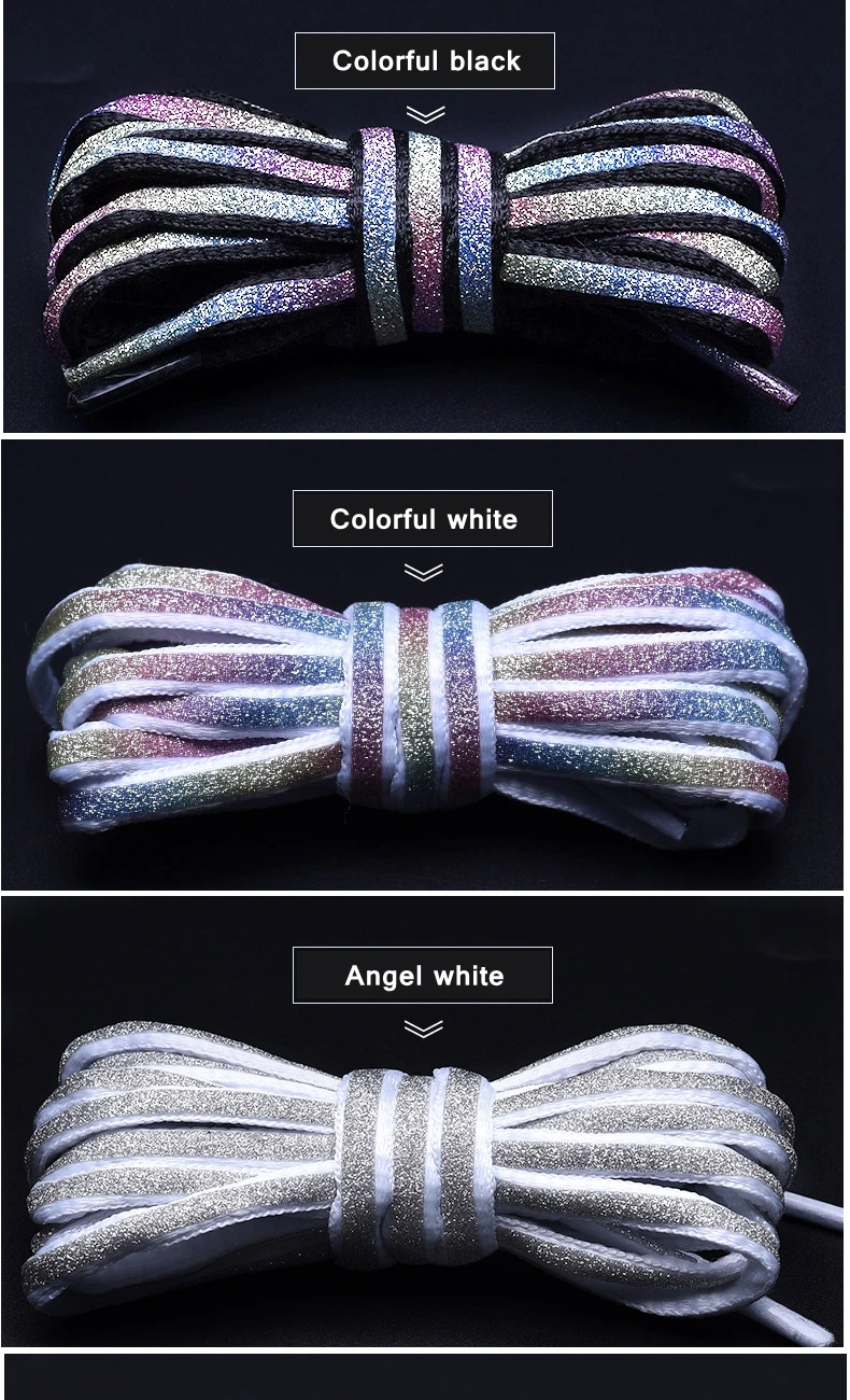 Светоотражающие шнурки, лазерный шнурок с блестками, плетеный браслет, для кроссовок, для бега, шнурки для взрослых и детей