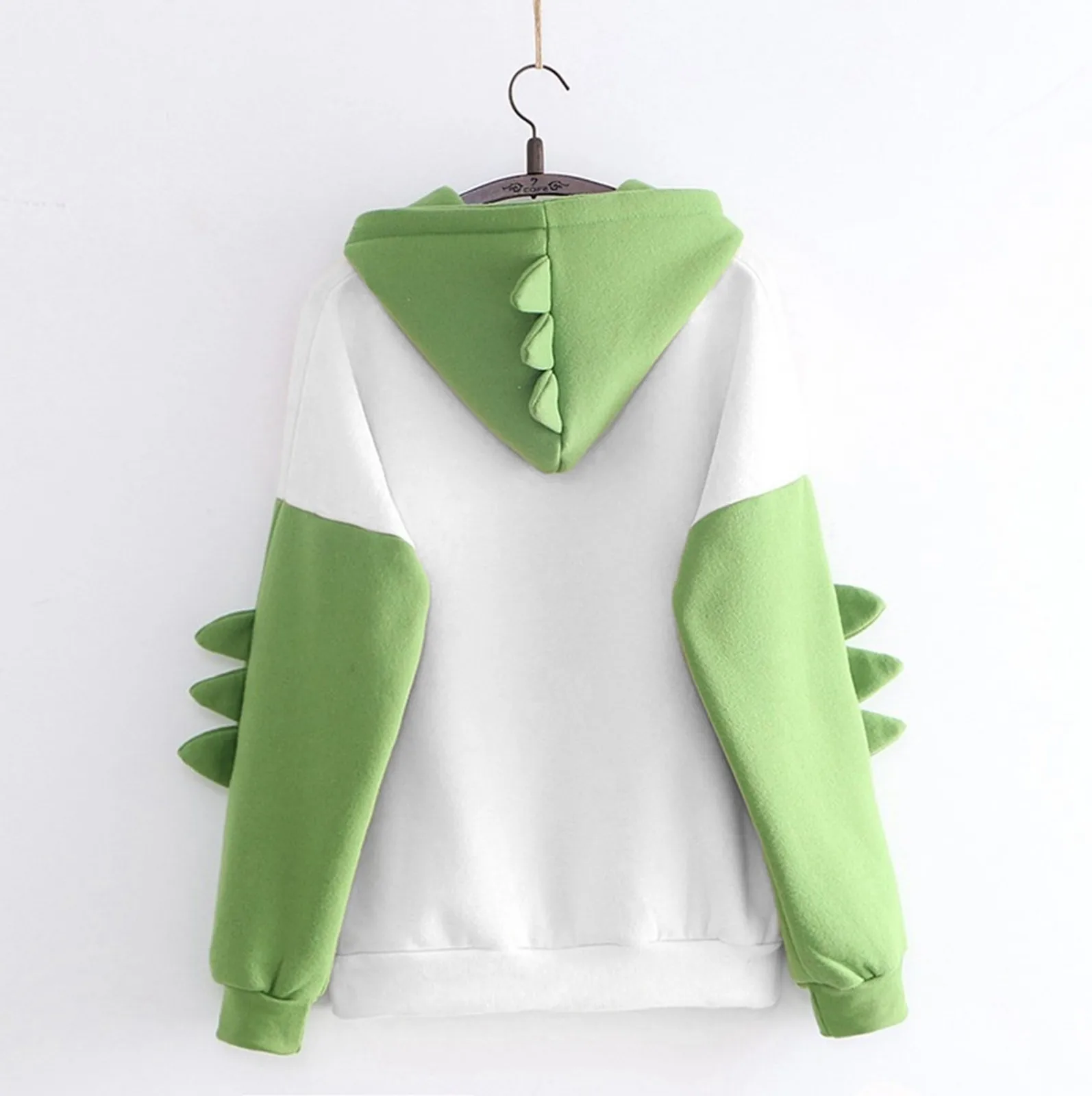 Толстовка в стиле Харадзюку, Женский свитшот, толстовки большого размера, милые топы с длинным рукавом, зимние толстовки с принтом динозавра