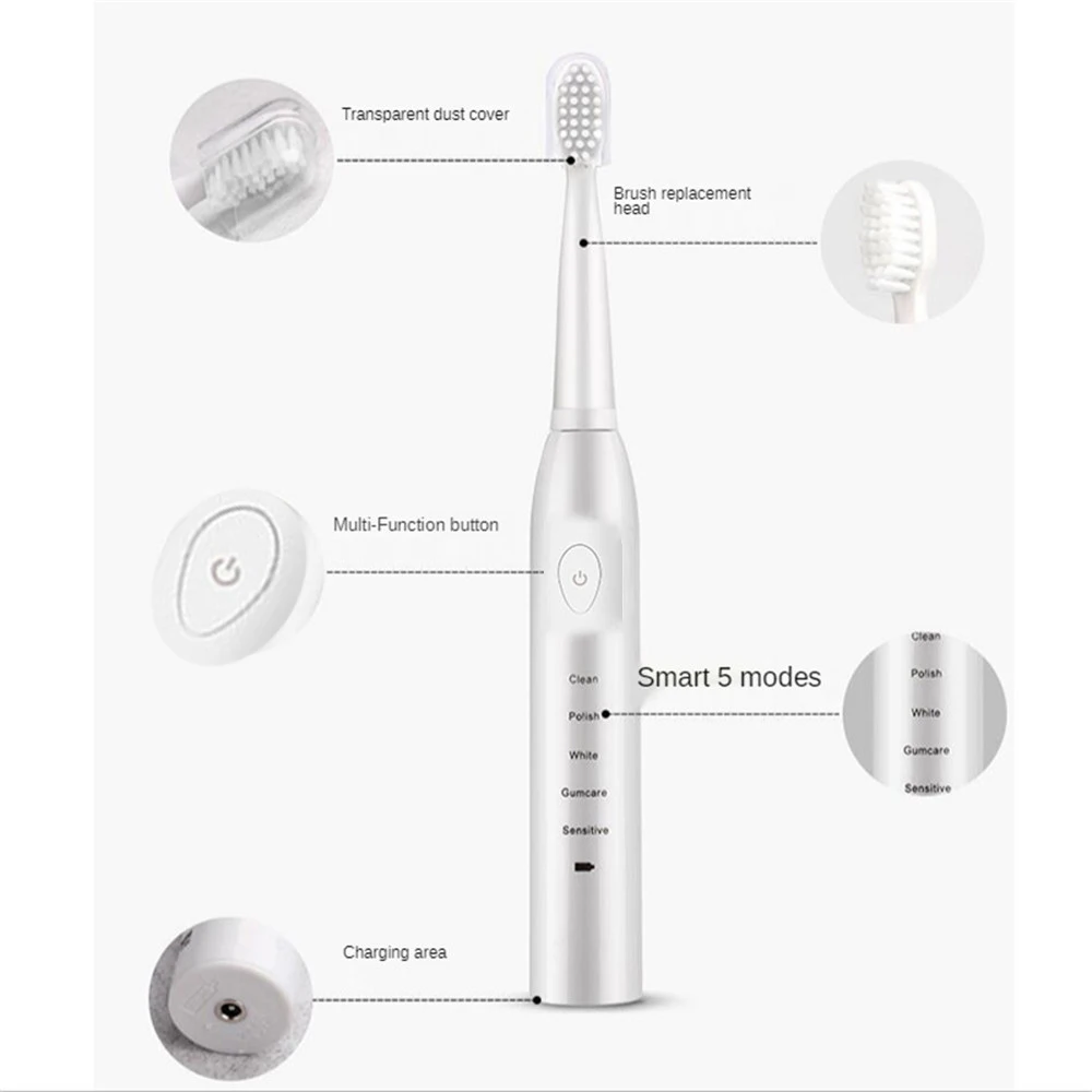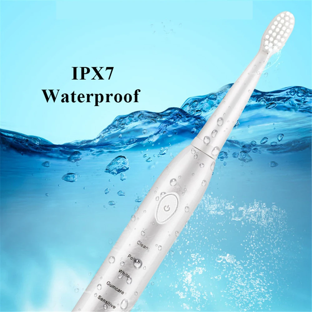Электрическая зубная щетка Super Sonic, умный таймер, отбеливание, водонепроницаемость IPX7, зарядка через USB, с 3 сменными насадками