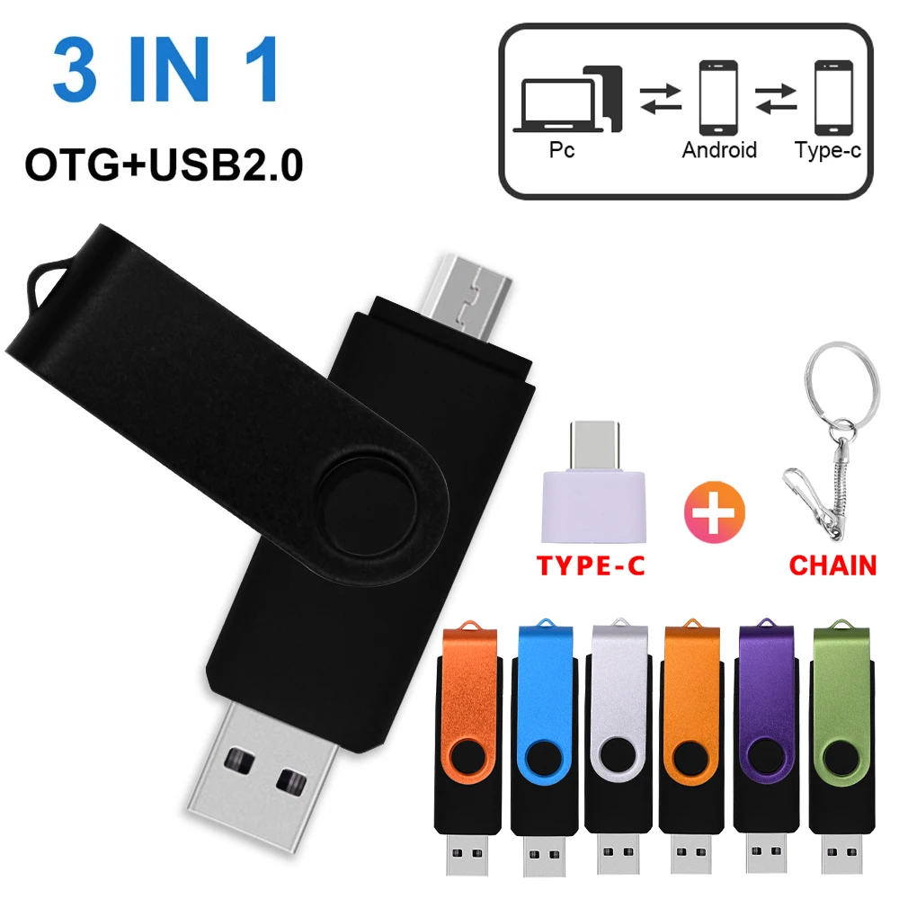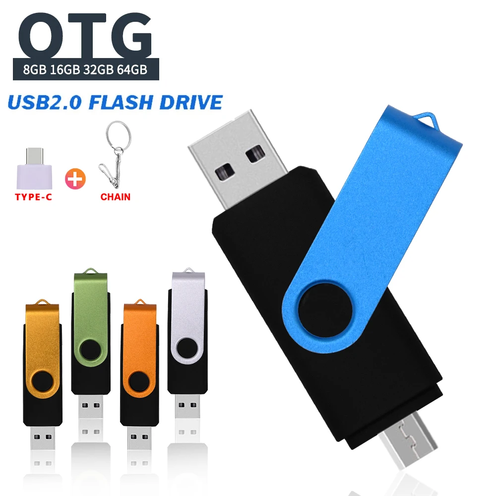 Микро otg Usb-накопитель Type-C, флеш-накопитель 256 ГБ, 128 ГБ, 64 ГБ, 32 ГБ, 16 ГБ, USB флеш-накопитель с реальным объемом, флеш-накопитель 2.0 с адаптером Type-C
