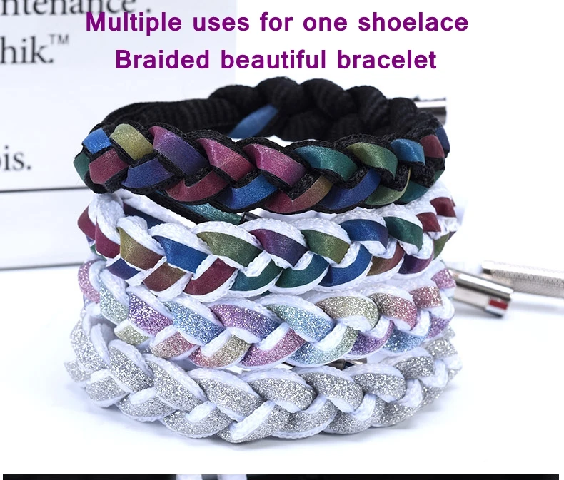 Светоотражающие шнурки для обуви с лазерными блестками для ночного спорта, яркие круглые шнурки могут быть вручную сплетены в женские браслеты