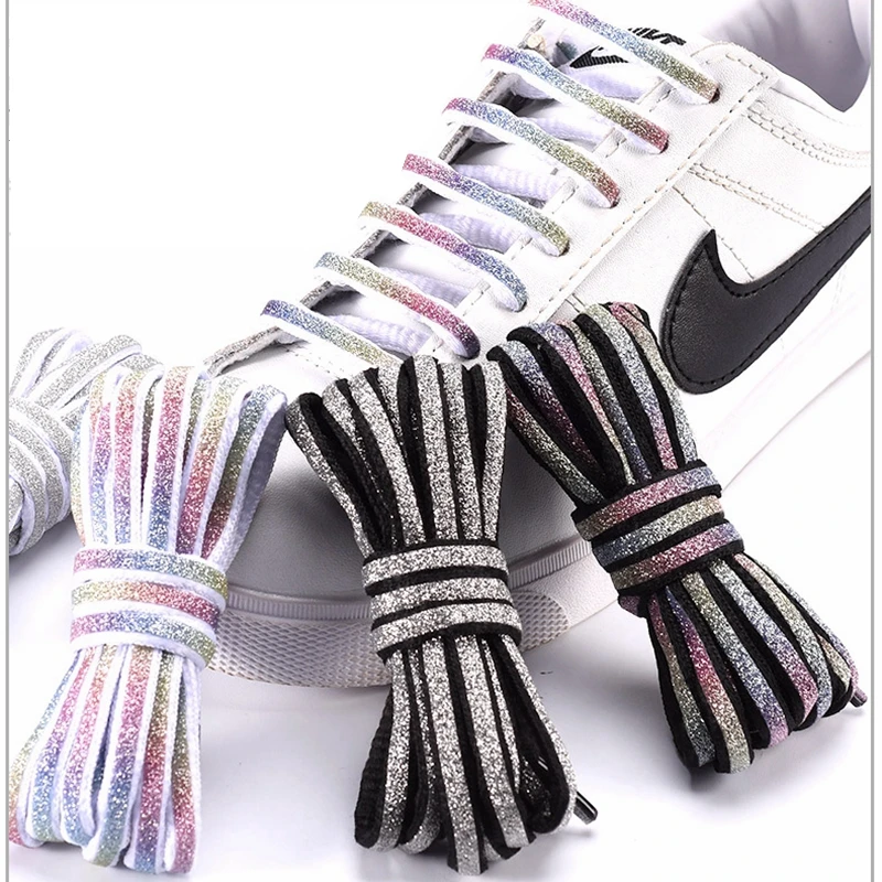 Лазерные светоотражающие шнурки для обуви с блестками в ночное время, спортивные цветные круглые шнурки можно вплетать вручную в браслеты, модный ботинок