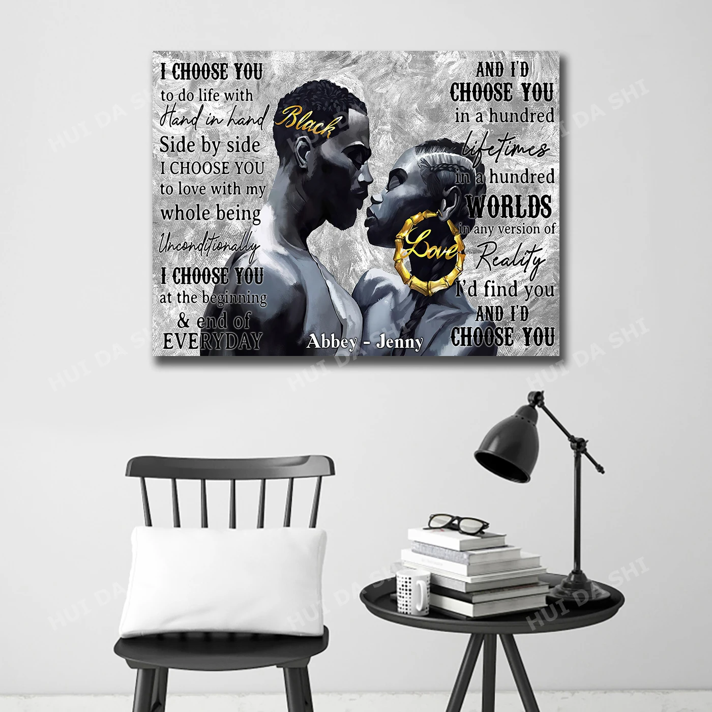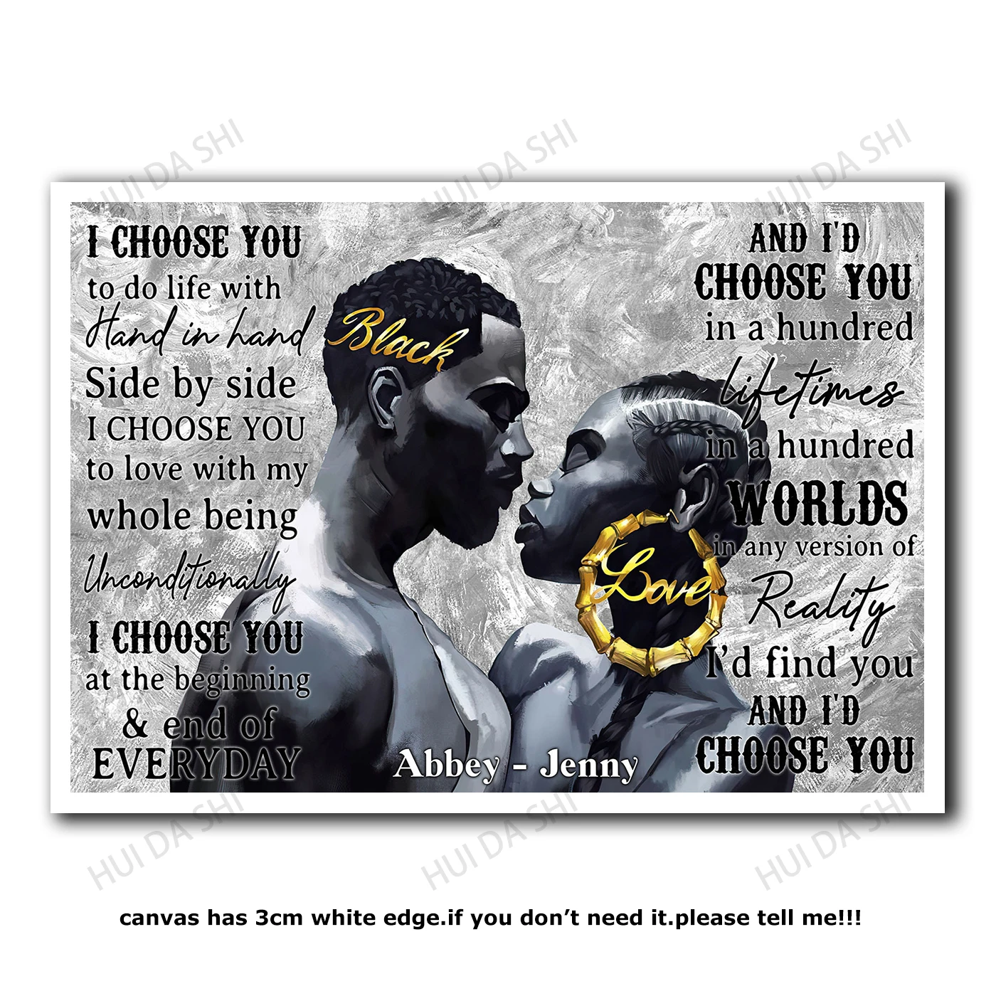 Черный холст для пары, я выбираю вас, чтобы сделать жизнь с плакатом, черная король, Черная Королева, африканский королевский плакат, африканская семья