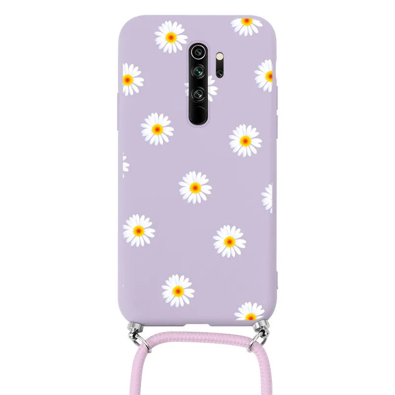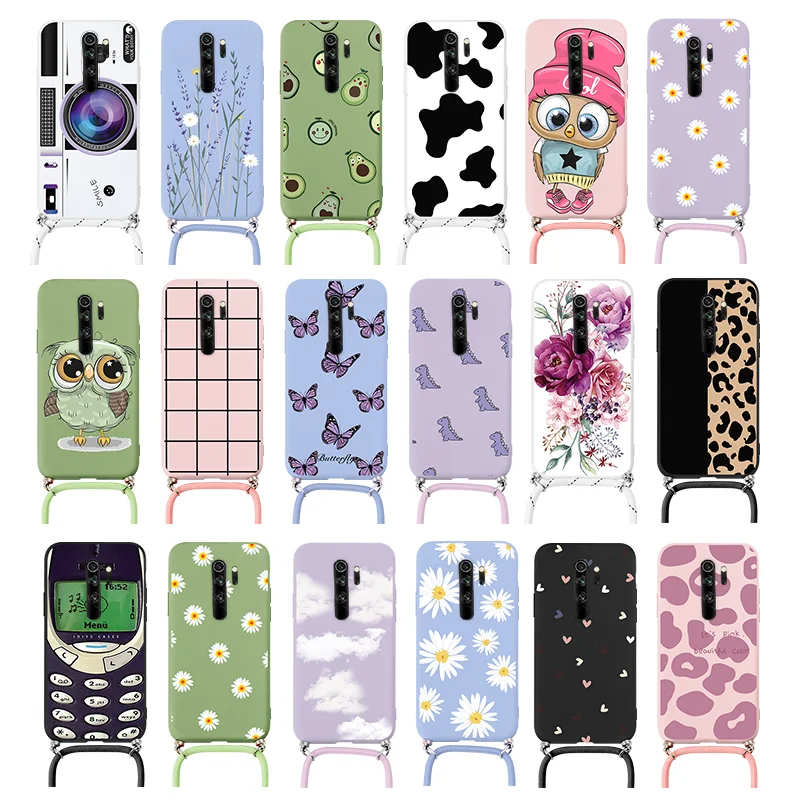 Чехол для Xiaomi Redmi Note 8 Pro 8T, ремешок, шнур, цепочка, ожерелье, ремешок, чехол для Redmi Note8 Note8T Note8Pro, Силиконовый Цветочный чехол