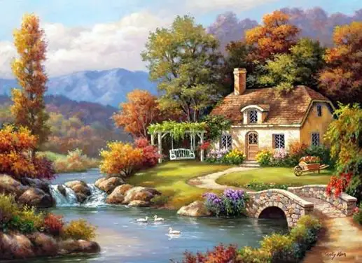 Лесная хижина мост пружина вода высшее качество вышивка рукоделие 1...