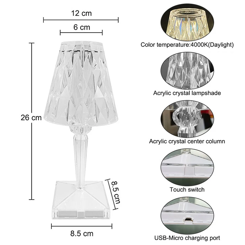 Перезаряжаемый ночник, Хрустальная декоративная настольная лампа с ...