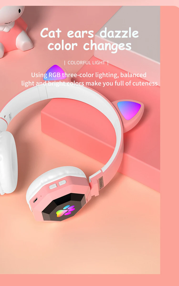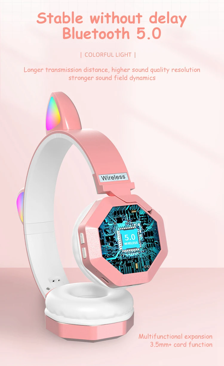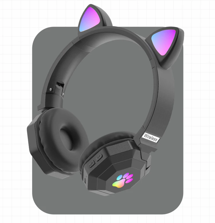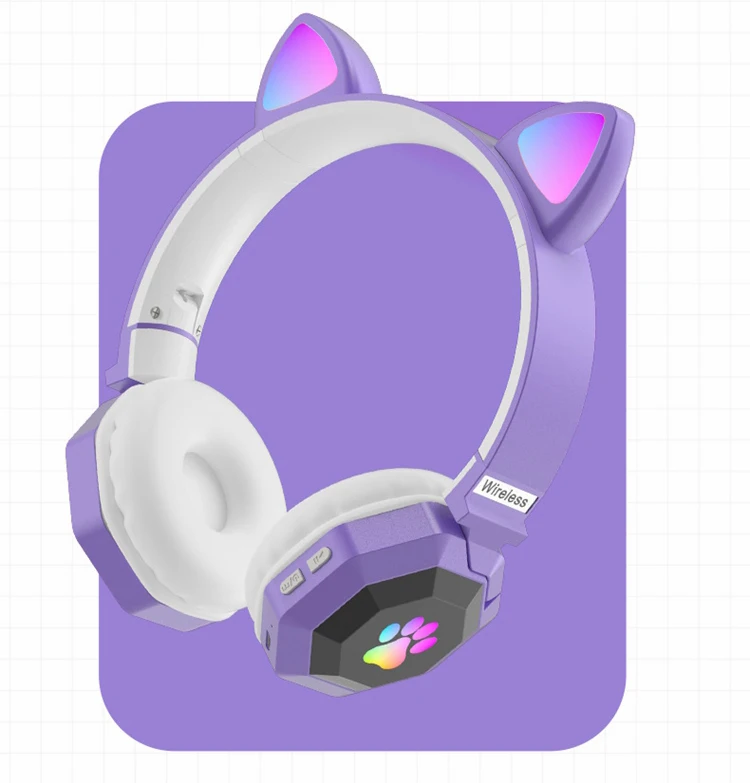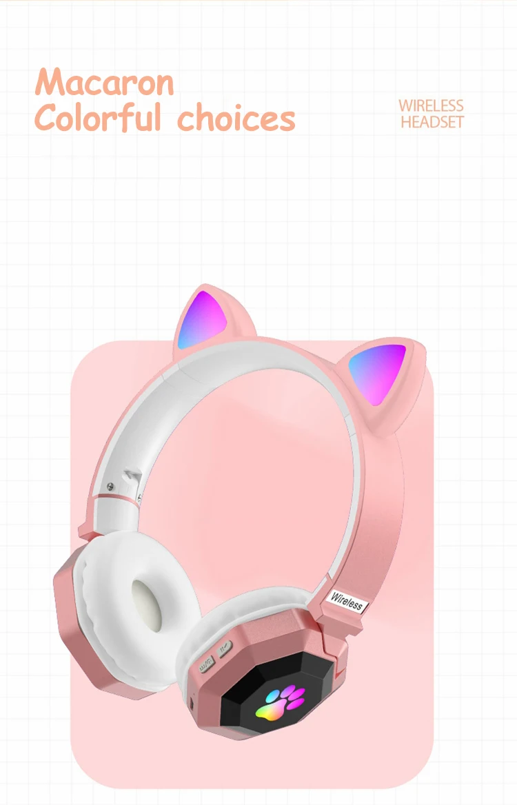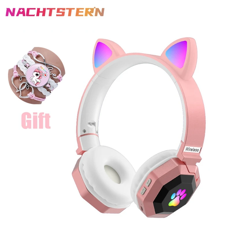 Беспроводные симпатичные наушники с кошачьими ушками, Bluetooth 5,0, гарнитура со светодиодной подсветкой, стерео музыкальный шлем, наушники со встроенным микрофоном, детский подарок