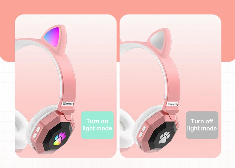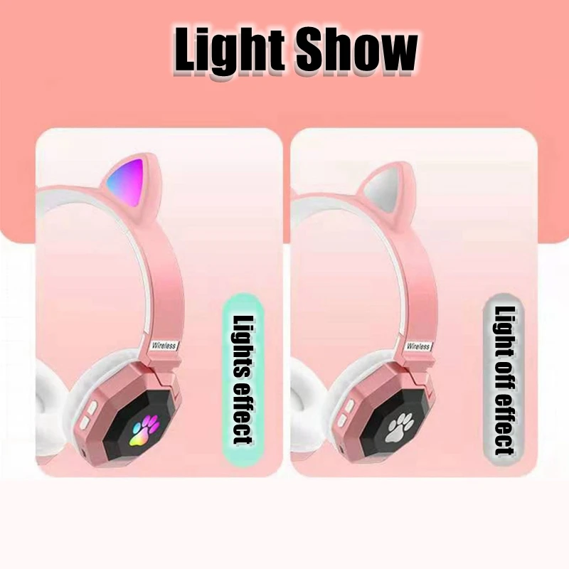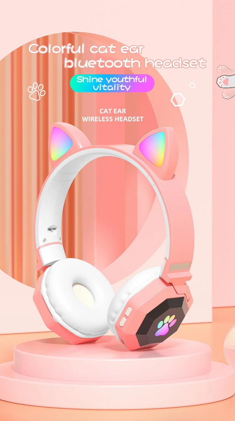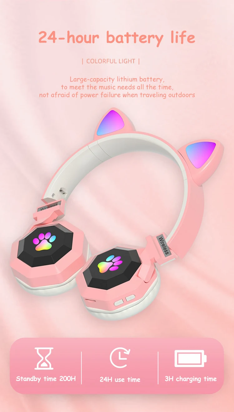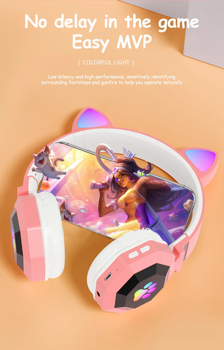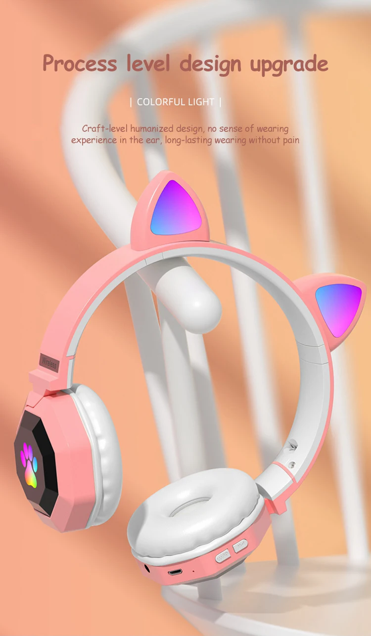 Беспроводные симпатичные наушники с кошачьими ушками, Bluetooth 5,0, гарнитура со светодиодной подсветкой, стерео музыкальный шлем, наушники со встроенным микрофоном, детский подарок