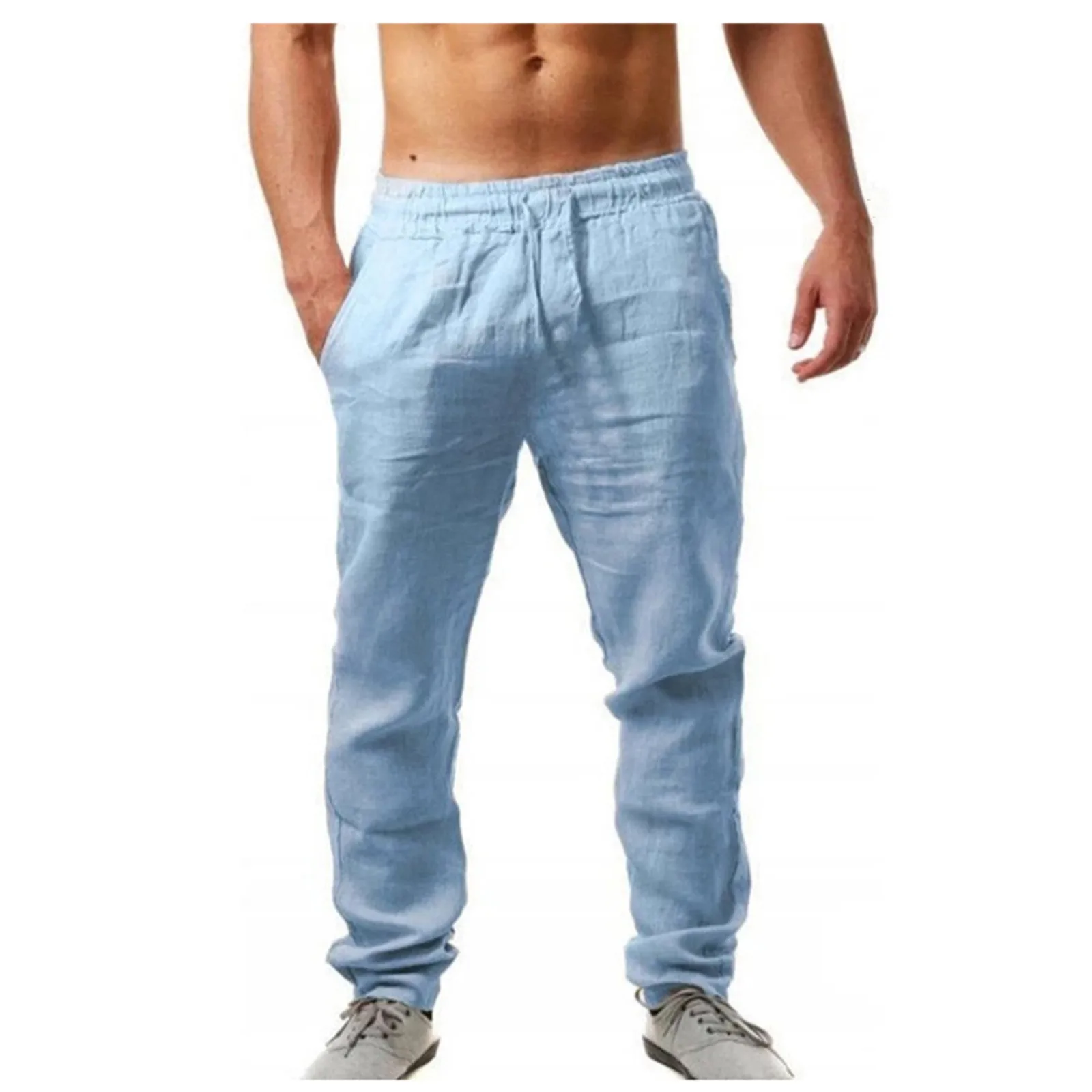 Новинка 2021, мужские брюки из хлопка и льна, мужские летние дышащие однотонные льняные брюки, уличная одежда для фитнеса, спортивные Штаны # G