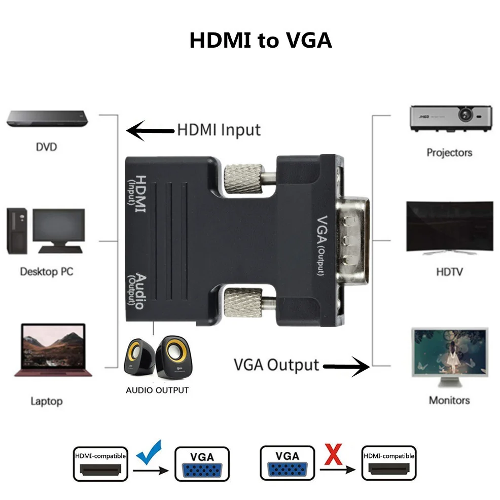 Отлично подходит для адаптера между HDMI PC и VGA монитором