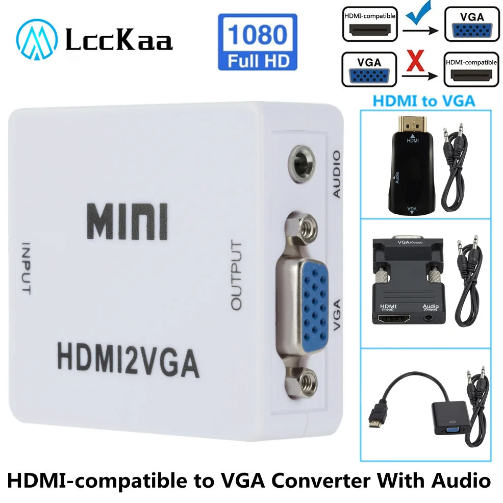 LccKaa 1080P HDMI-совместимый адаптер VGA преобразователь с аудио HDMI2VGA кабель для ПК ноутбука ТВ приставки компьютера проектора дисплея