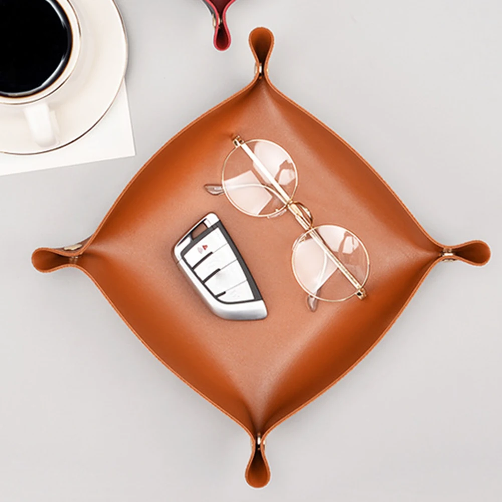 Скандинавский складной ящик для хранения кожаный квадратный лоток для игральных костей Настольный кошелек для ключей для монет Настольный органайзер чехол для домашнего декора