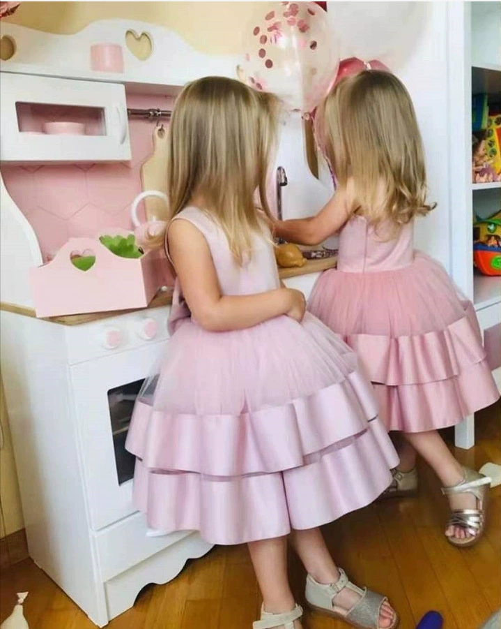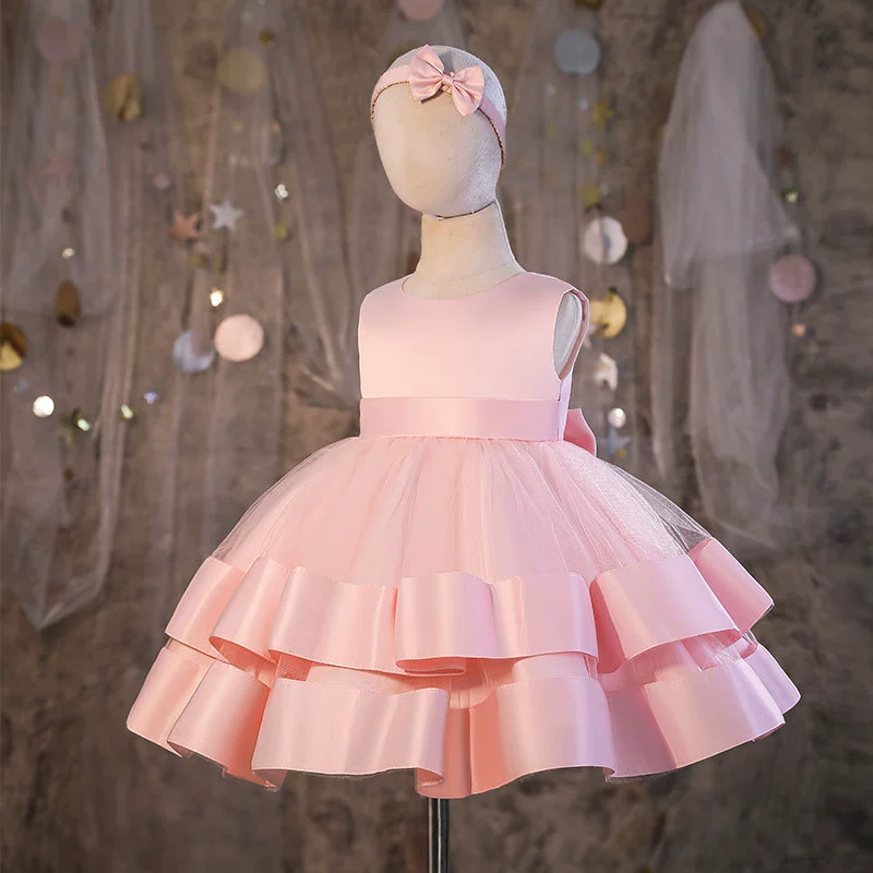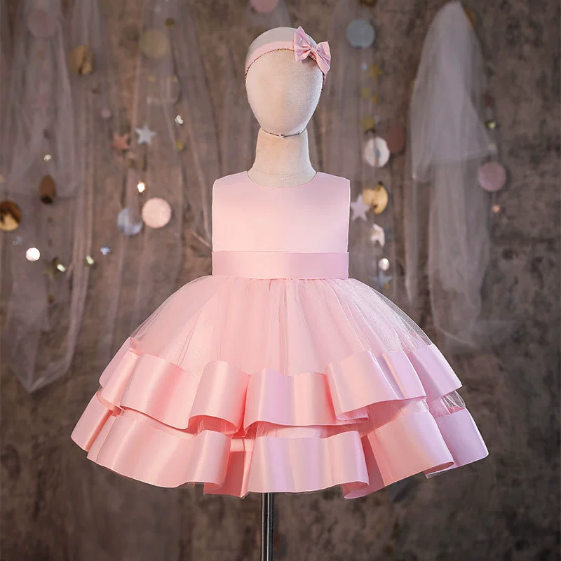 Многослойное платье принцессы для девочек, без рукавов, однотонное ...