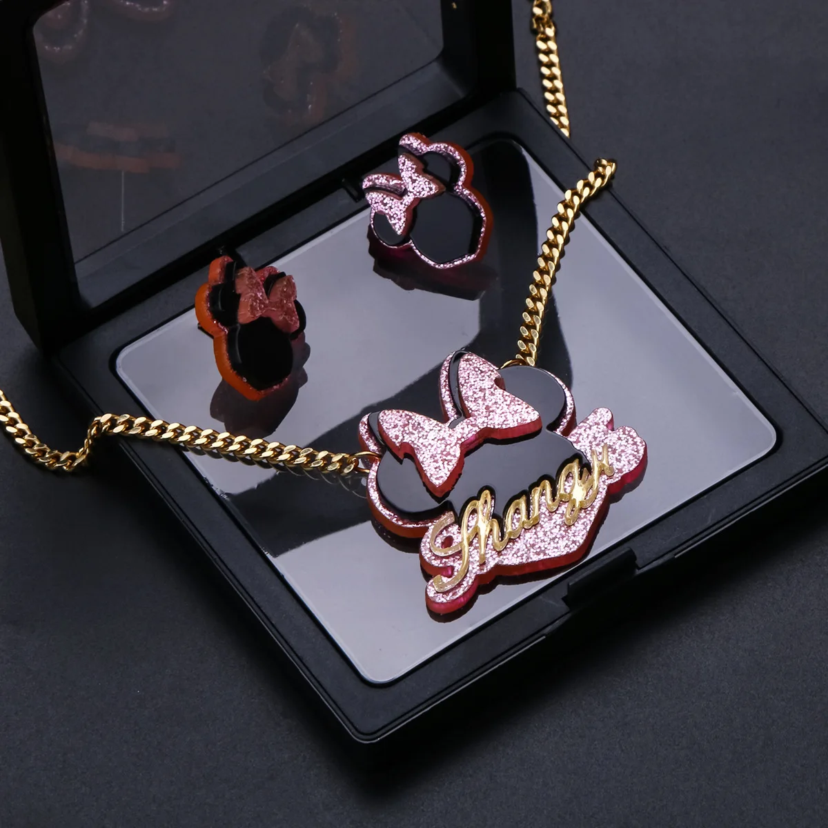 2021 детское ожерелье с мультяшным именем акриловое имя ожерелье серьги-гвоздики индивидуальный кубинский подарок на цепочке