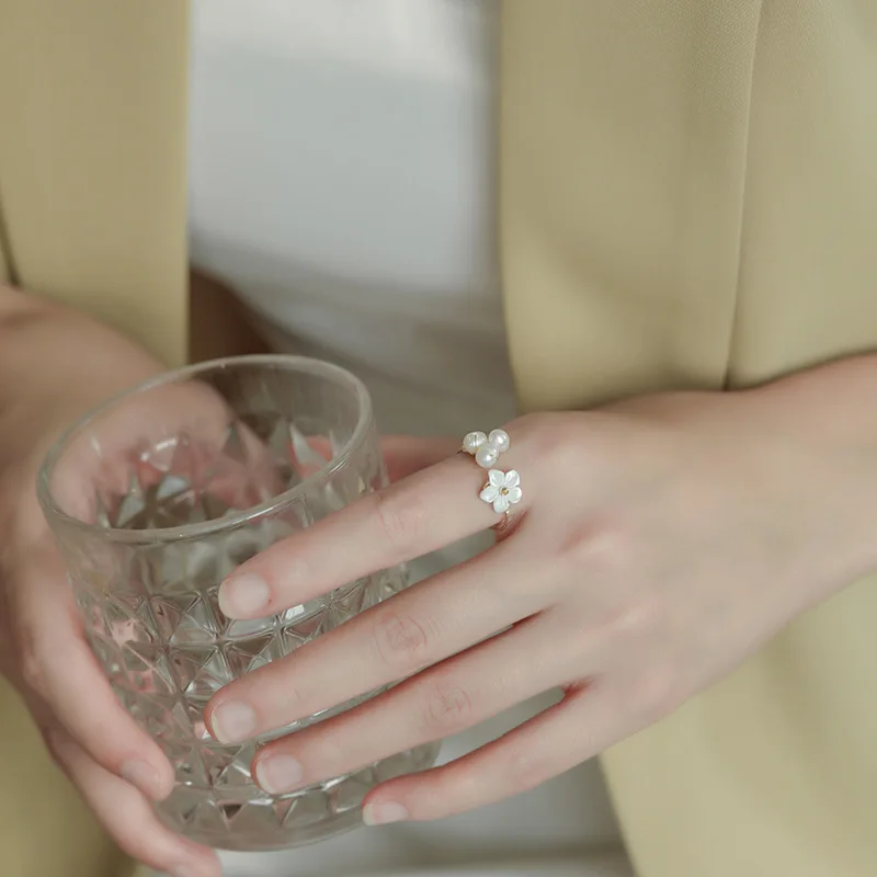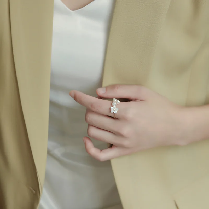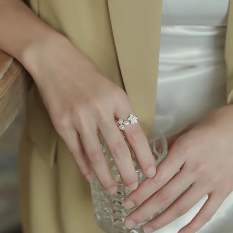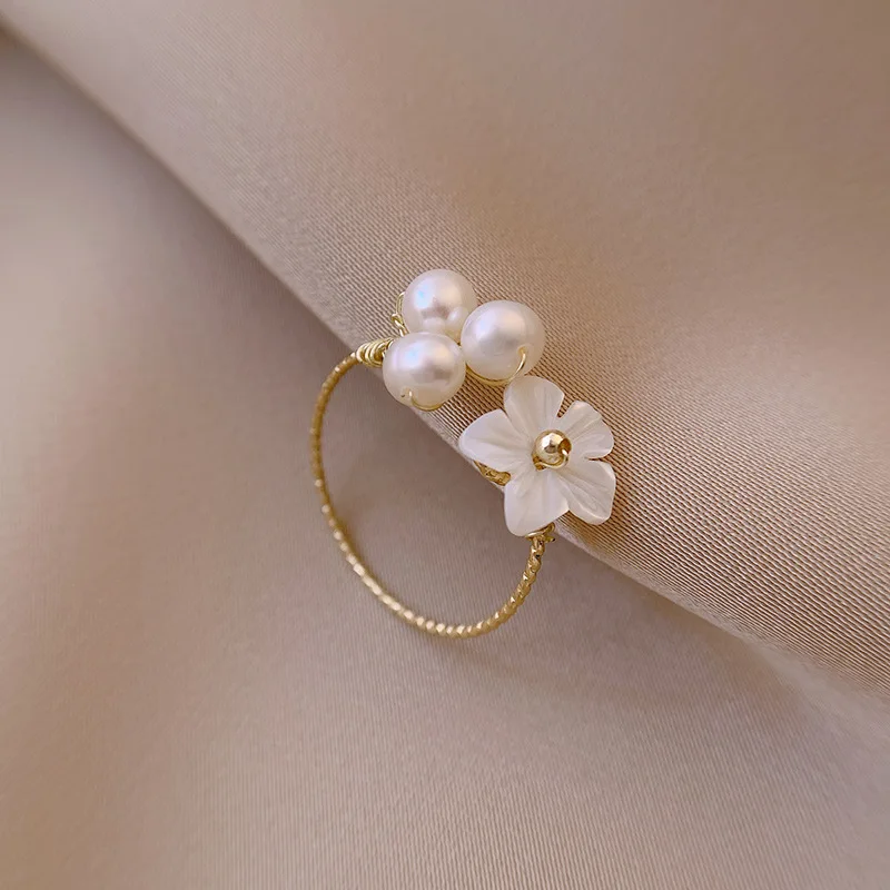Женское кольцо с жемчугом, изысканное Открытое кольцо с жемчужинами и цветами, ювелирное изделие в Корейском стиле, 2021