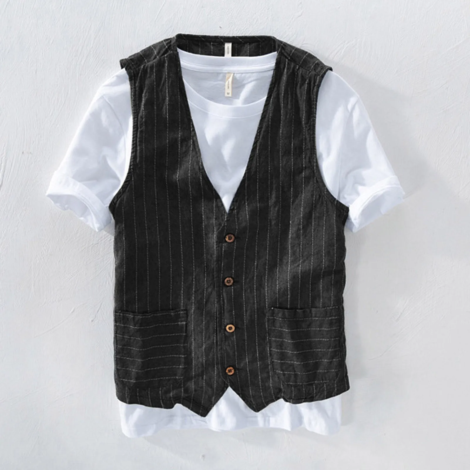 Летняя мужская Повседневная мода дикий полосатый топ на бретелях куртка Топ Блузка