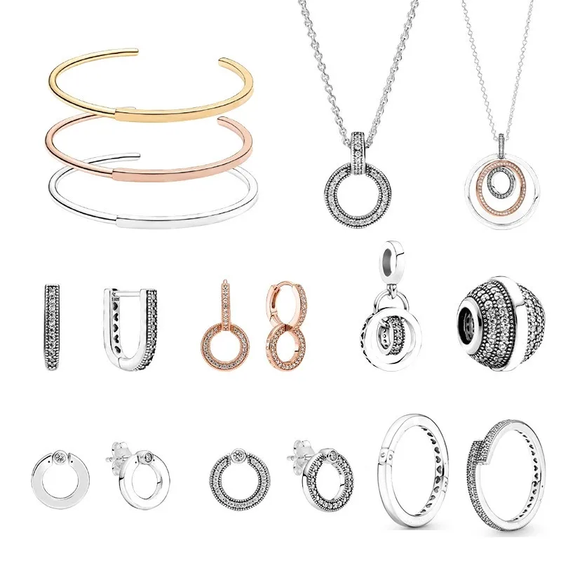 Новинка 2021, блестящие Двойные серьги-кольца серии ранней осени из серебра 925 пробы, двухцветное многокольцо, ожерелье, подвеска, Модный комплект ювелирных изделий