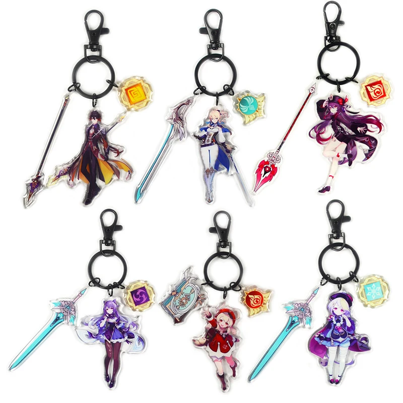 Брелок для ключей с игрой Genshin Impact, брелок для косплея Ху-Тао, джинс-ганнхилдр, Кекин, Кли, моракс, цици, акриловый брелок с подвеской в сумку