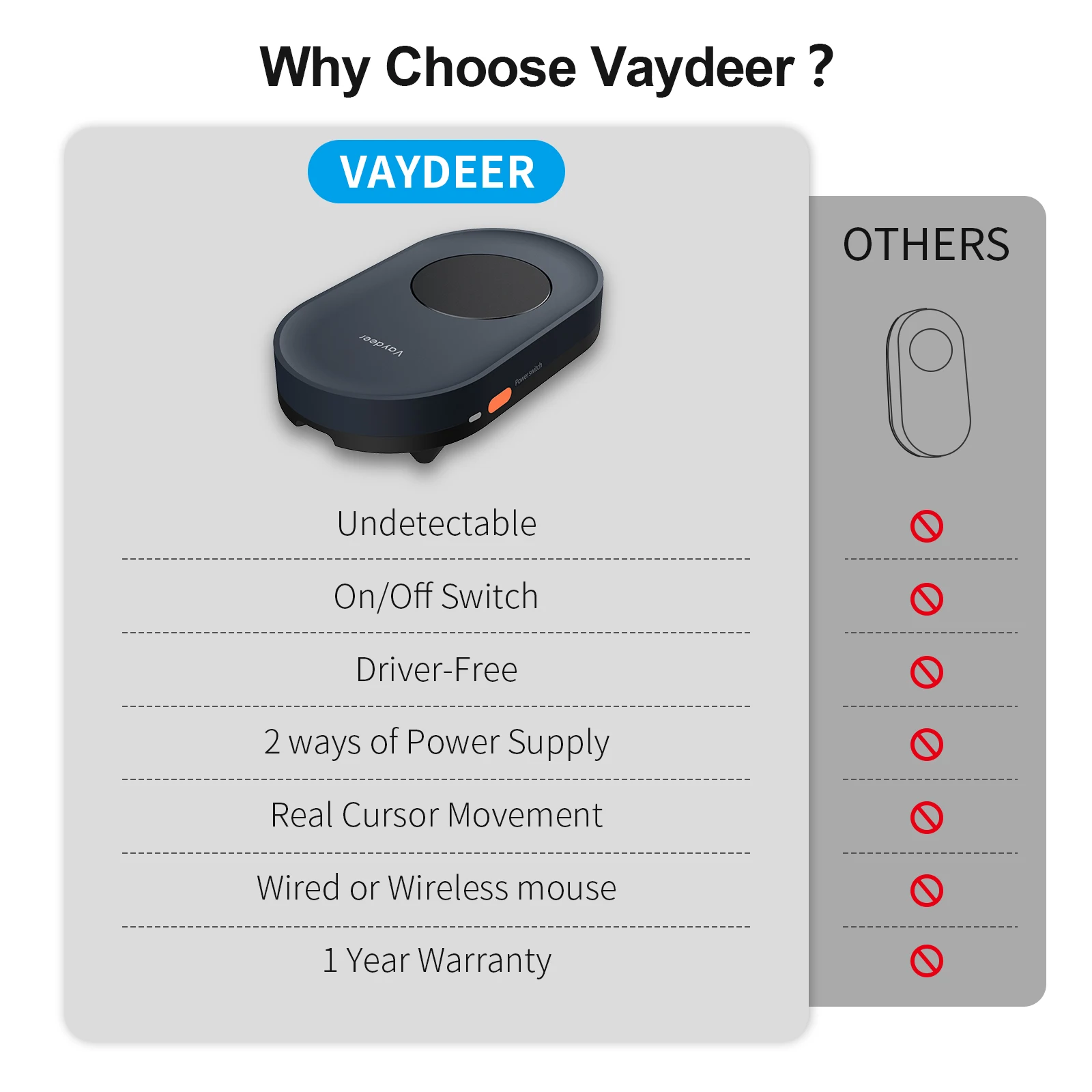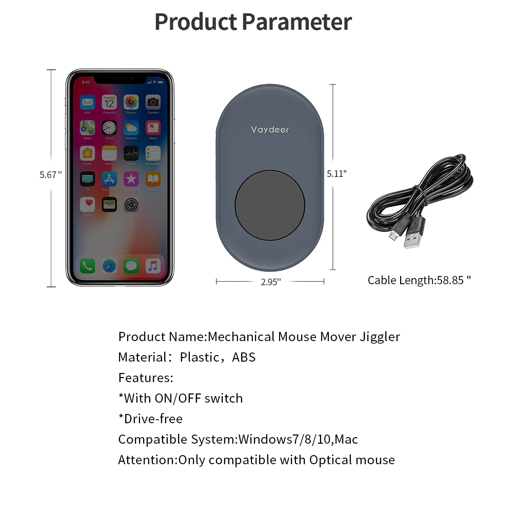 【 100% не обнаруживается it】предназначен для питания от адаптера питания или usb-порта вашего компьютера, Vaydeer mouse jiggler не будет обнаружен вашим ит-отделом.【Широкая Совместимость 】 эта мышь jiggler совместима с win7/8/10/Linux/Mac. Любую оптическую мышь можно использовать с этой мышкой.【 Driver-free】 нет необходимости устанавливать любой драйвер на вашем компьютере, так как компьютер является просто источником питания для этой мыши jiggler.【Теплые напоминания. Пожалуйста, убедитесь, что Красный светильник вашей мыши Отлитый на вращающееся колесо, включите джигглер мыши, затем вы можете использовать его.【Customer Service】We предоставляем 12-месячную гарантию для Vaydeer мышь jiggler. Пожалуйста, не стесняйтесь обращаться к нам с любыми вопросами или запросами. Мы с нетерпением ждем возможности предоставить Вам высококачественную продукцию и лучший сервис, которого вы заслуживаете.