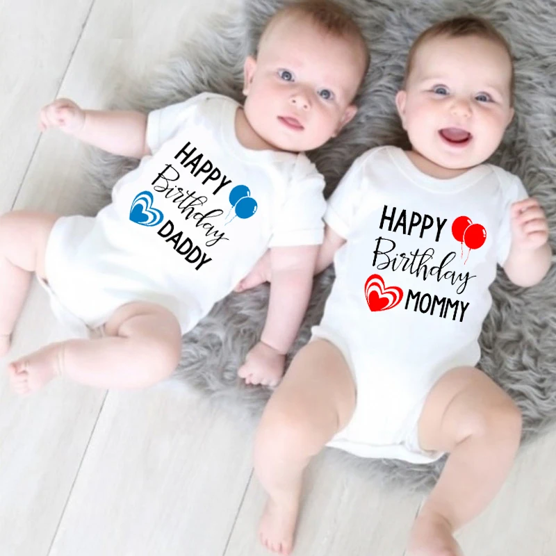 Комбинезон детский, с принтом Happy Birthday, хлопковый, с коротким...