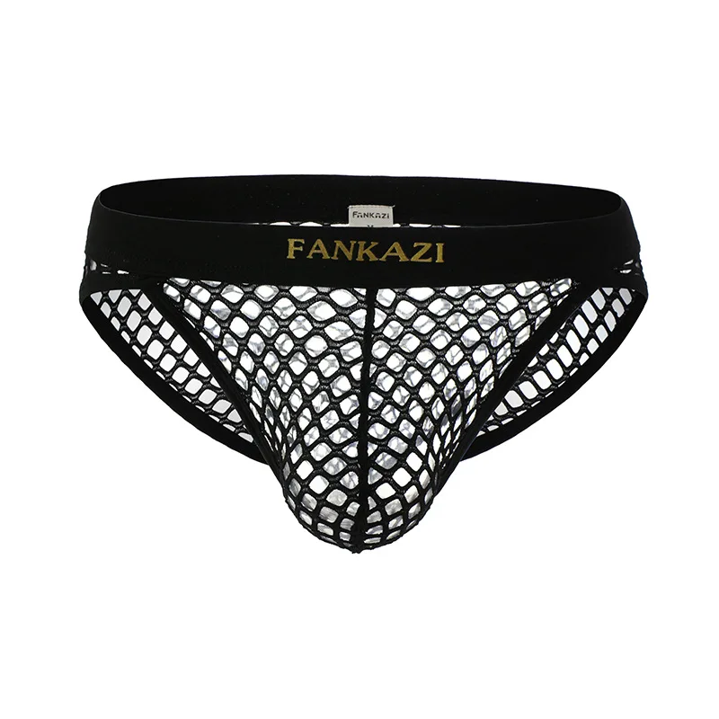Трусы-брифы мужские сетчатые с низкой посадкой, пикантные трусы-бикини с карманами, Прозрачное нижнее белье для геев