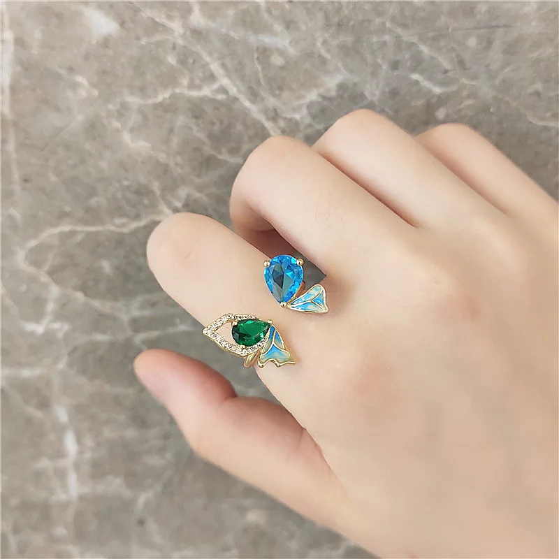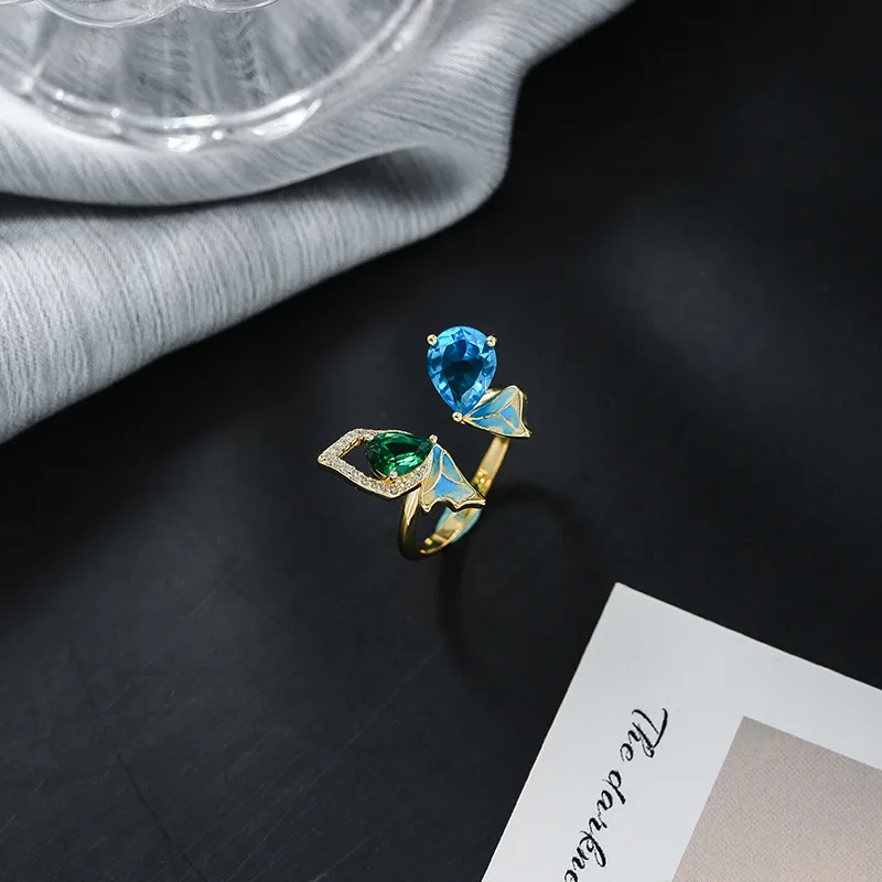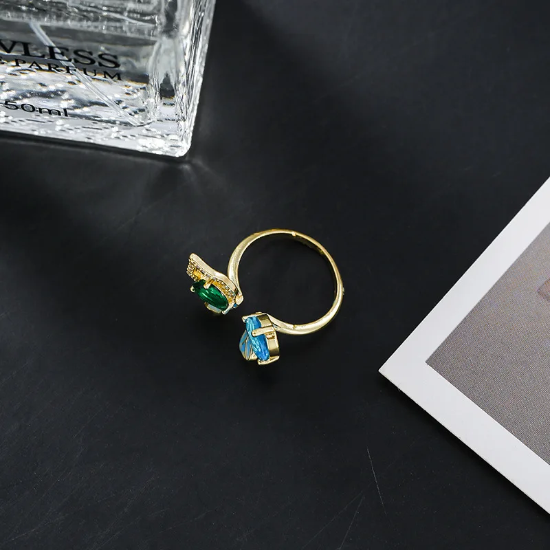 Кольцо женское, голубое, зеленое, 2021, корейский стиль, кольцо с бабочкой из кристаллов